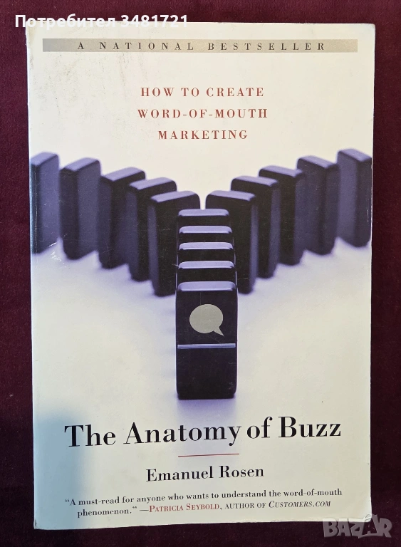 „Анатомията на Buzz“, написана от бившия вицепрезидент по маркетинг Емануел Розен, определя продуктите и услугите, които се възползват най-много от buzz-а, и предлага специфични методи за създаване и поддържане на ефективни стратегии за реклама от уста на уста. Въз основа на интервюта с повече от 150 маркетингови ръководители, които успешно са изградили buzz за големи марки, Розен описва тънкостите на привличането на вниманието на влиятелни първи потребители и „големи“ лидери, обсъжда доказани техники за стимулиране на продажбите от клиент на клиент, включително как компаниите могат да разпространят информацията до нови територии, като се възползват от клиентските центрове и мрежи в интернет.