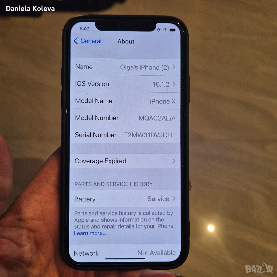 Продавам iPhone X в пълна изправност, без софтуерни проблеми. Телефонът ще бъде предаден след factory reset. Състояние Дисплей: има драскотини по стъкления протектор, самият екран е запазен. Гръб: има видима пукнатина (виж снимките). Батерия: Maximum Capacity 79%. Функции: всичко работи – Face ID, камера, звук, бутони, микрофон. В комплекта Телефонът Зелен кейс и дисплей протектор Подходящ за човек, който търси работещ iPhone на добра цена, без да държи на външния вид.