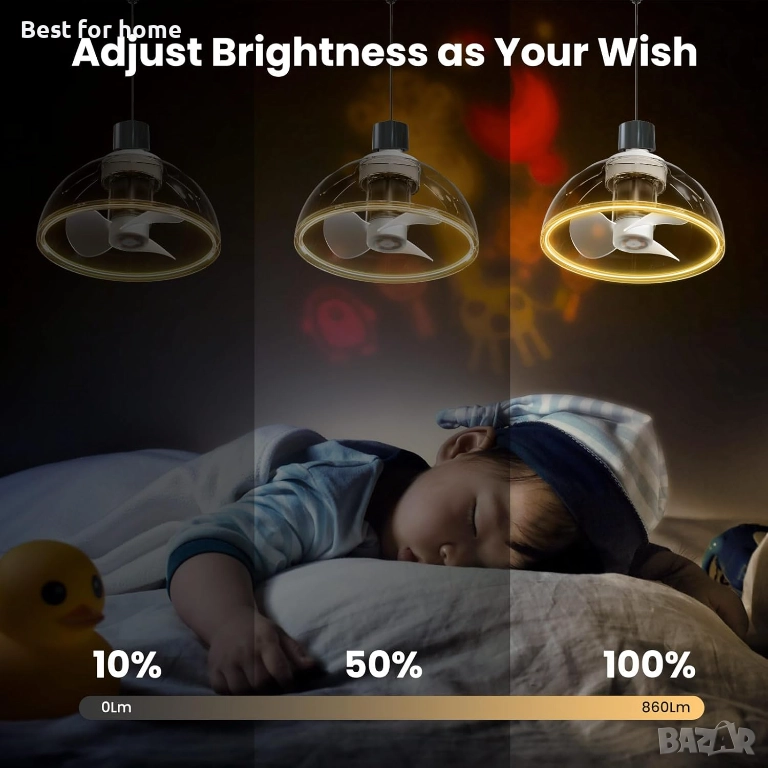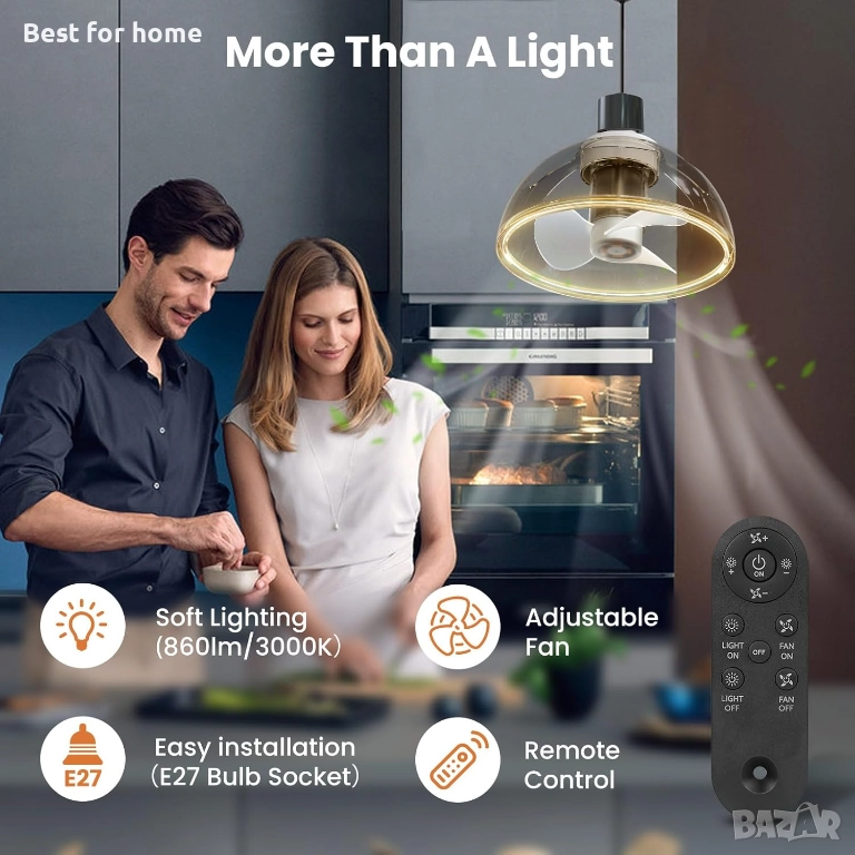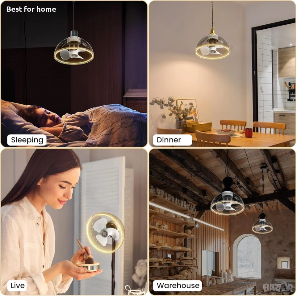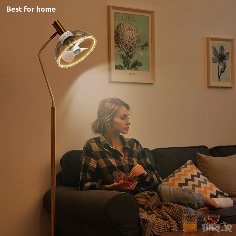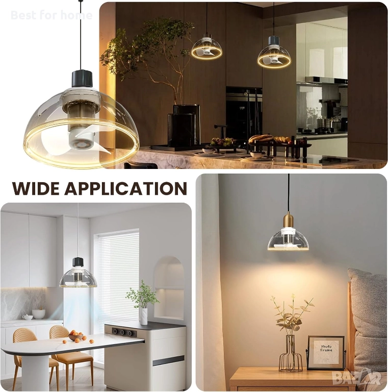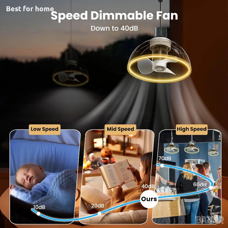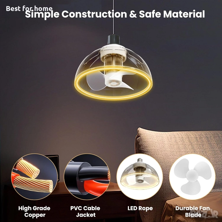Таванни вентилатори ZOTOYI E27 с осветление, LED таванно осветление с вентилатор и дистанционно управление, регулируема яркост 3000K, таванни вентилатори с скорост на вентилатора и дистанционно управление за хол, спалня, склад, 850lm [Енергиен клас E].