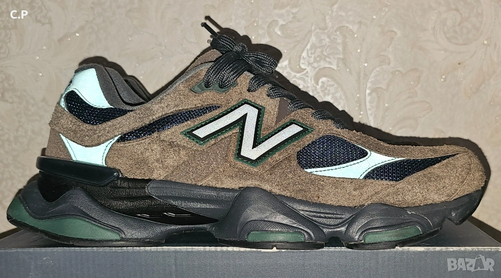 Маратонки New Balance 9060 в цвят "Beef and Broccoli" с космати кафяви велурени наслагвания и черна мрежеста основа. Номера на обувките е 46.5, 30см.