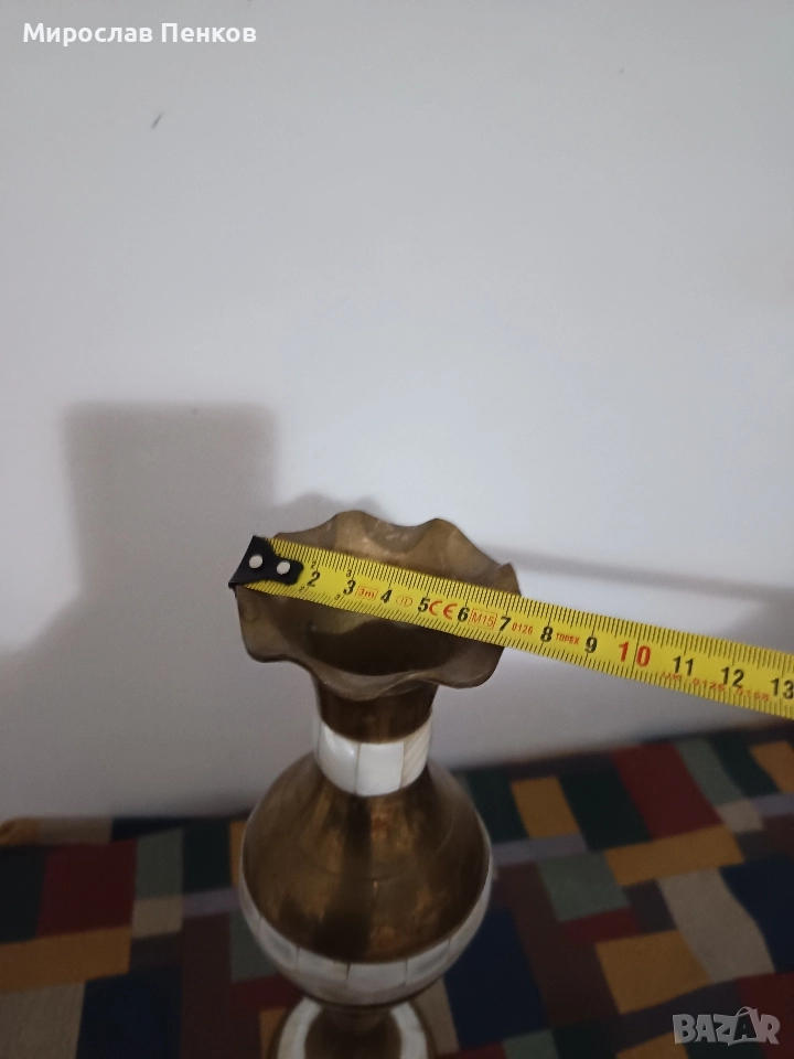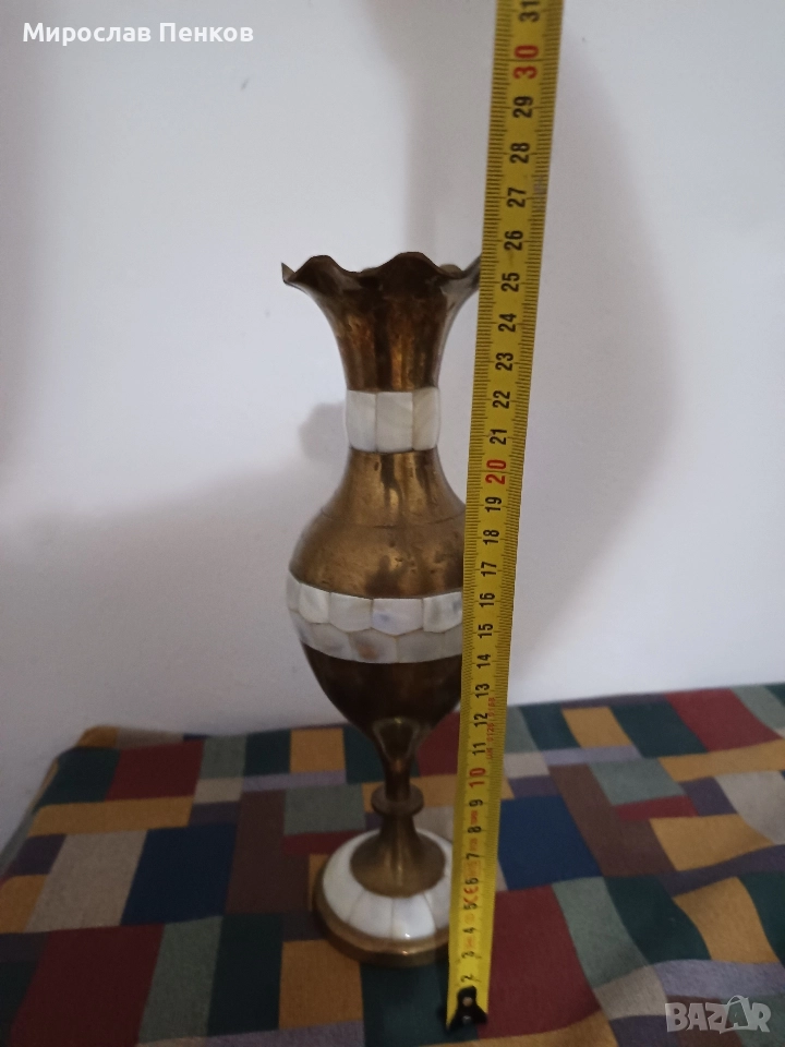 Месингова ваза със седеф в отлично състояние.Размери в снимките.