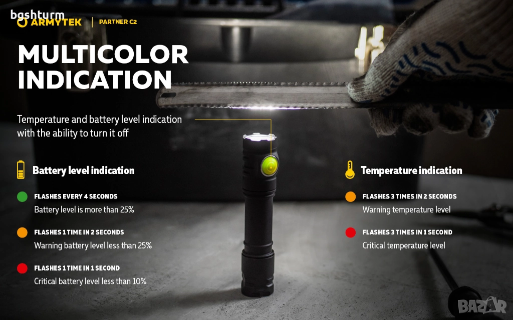 Цветна индикация за състоянието на батерията:
