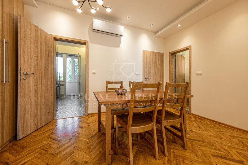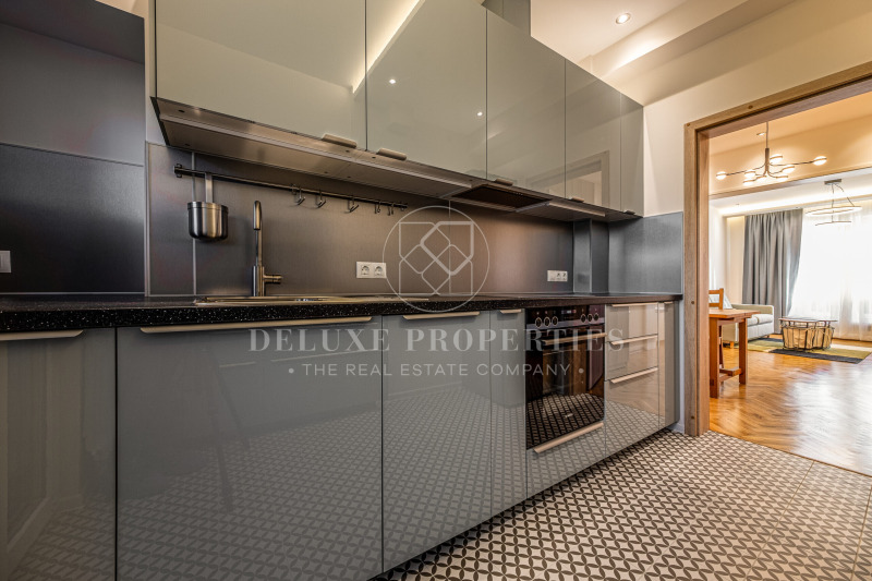 DELUXE REALTY има удоволствието да Ви представи уникален двустаен апартамент в сърцето на София, в непосредствена близост до бул. Витоша под наем. Имота е разположен на 4-ти от 5-ти жилищен етаж в чаровна сграда и разкрива чудесна гледка към Витоша планина и Черни връх.