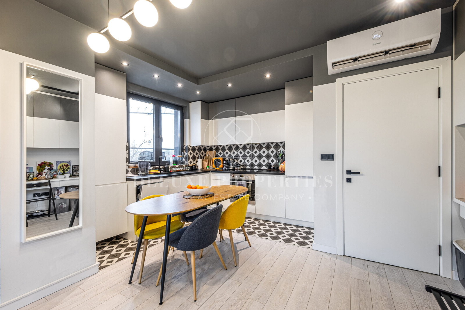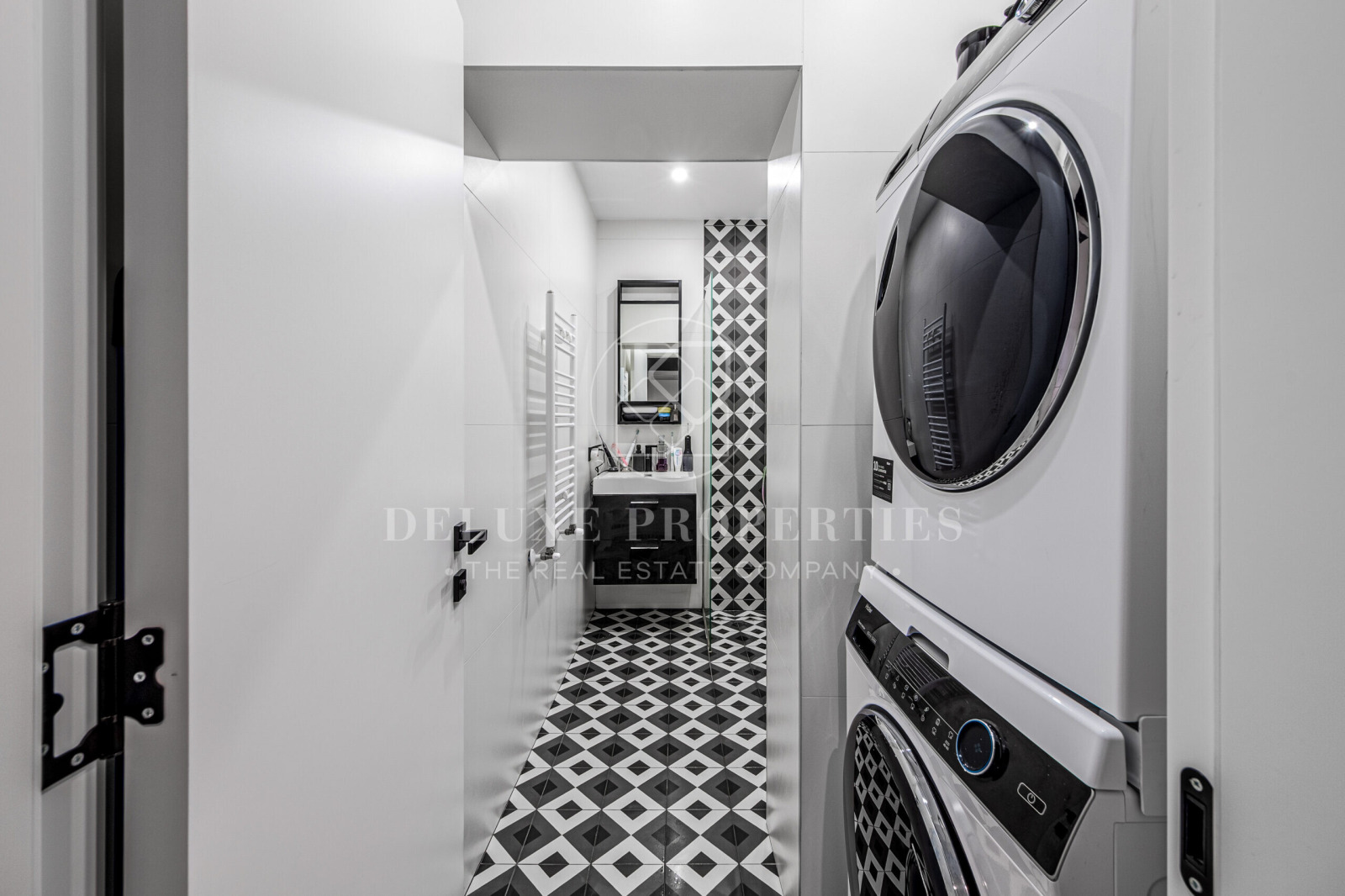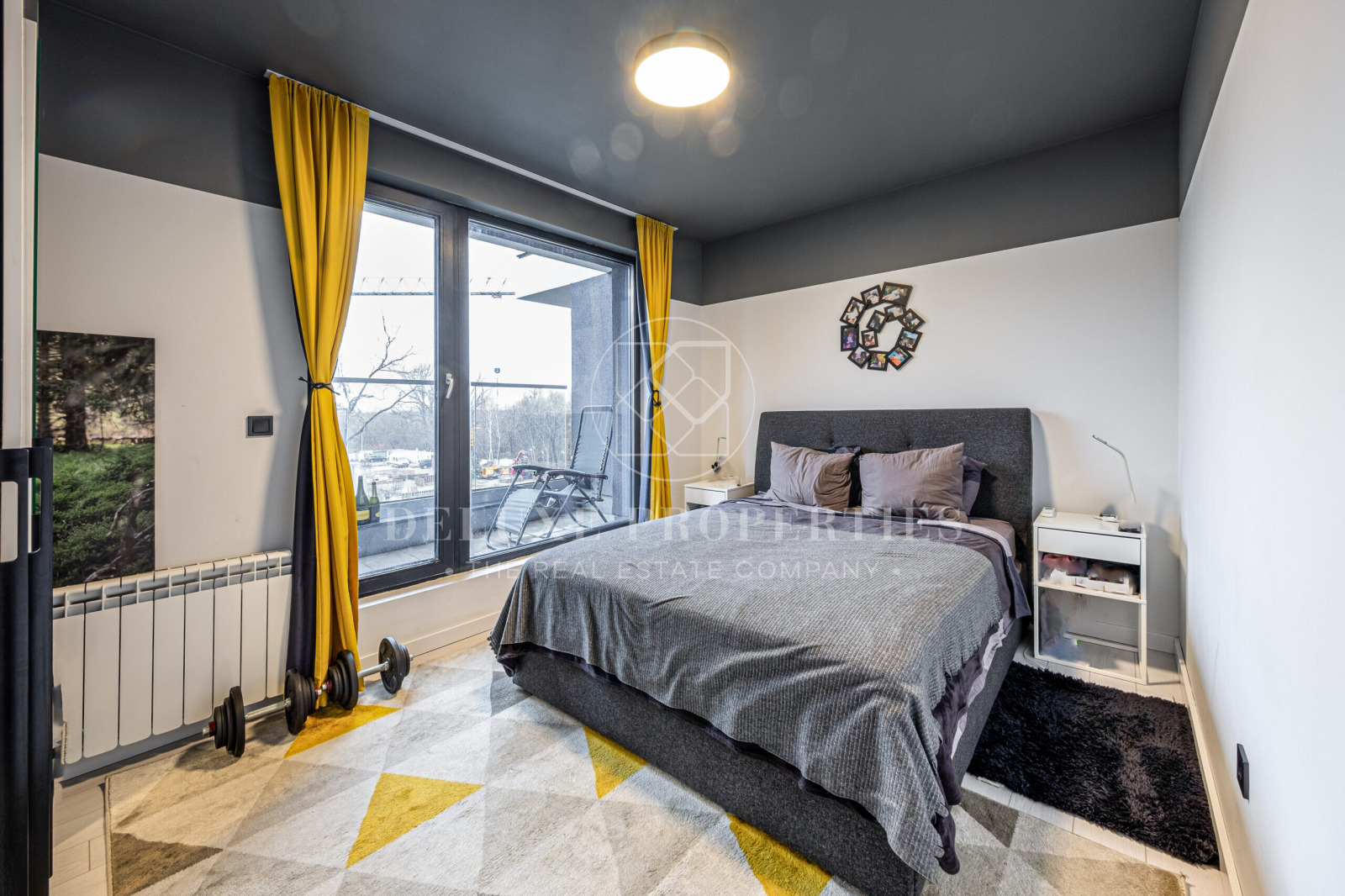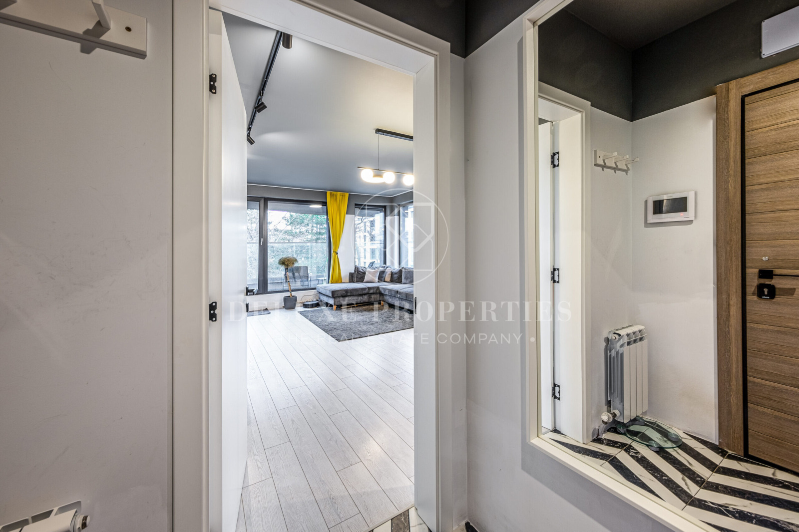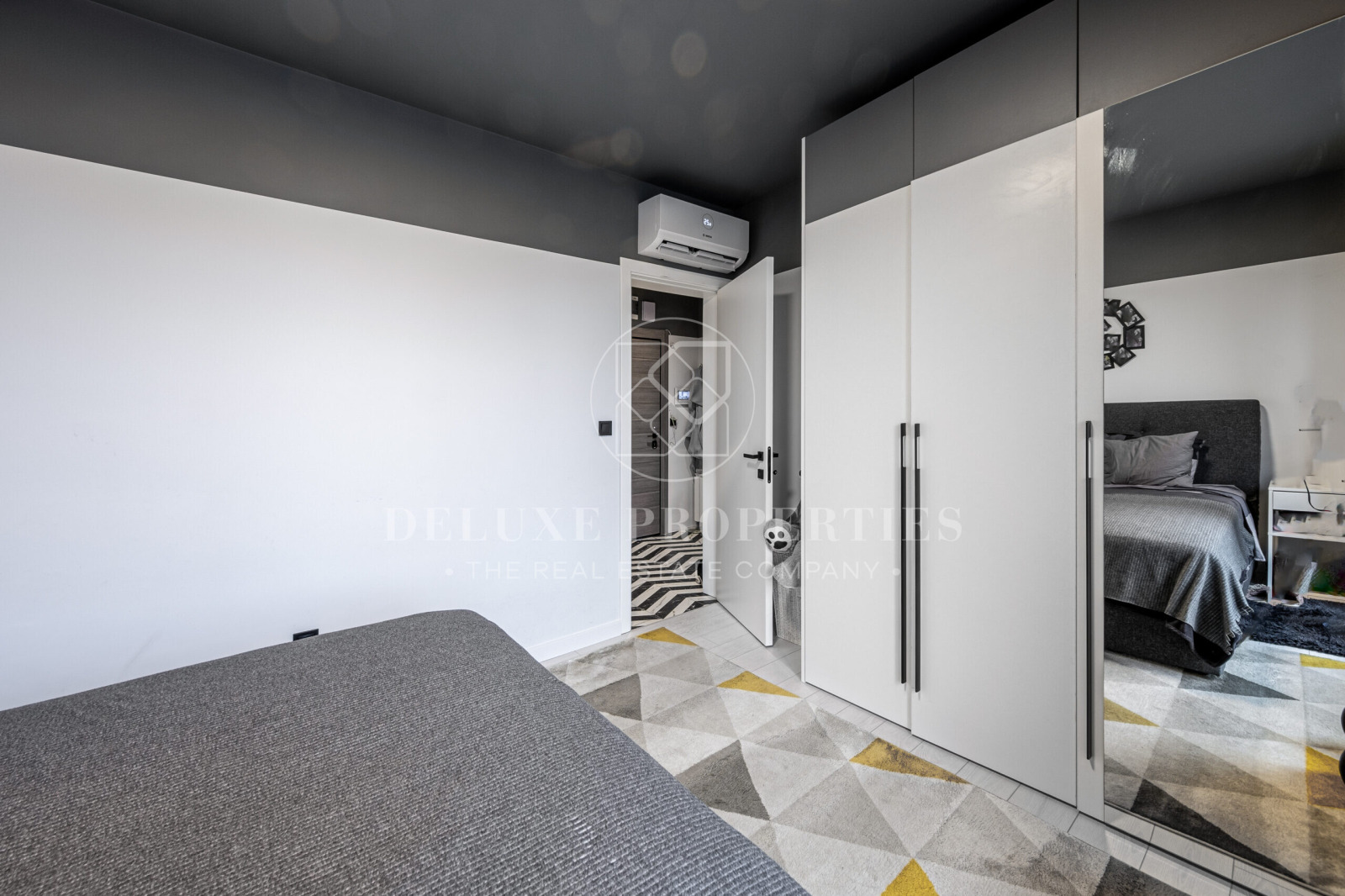 DELUXE PROPERTIES има удоволствието да Ви представи елегантен двустаен апартамент в кв. Кръстова вада под наем. Разположен е в малка бутикова сграда с чудесна локация в близост до парк Лозенец, мол Парадайс и Южен парк. Достъпът е контролиран, както има и 24-часово видеонаблюдение.