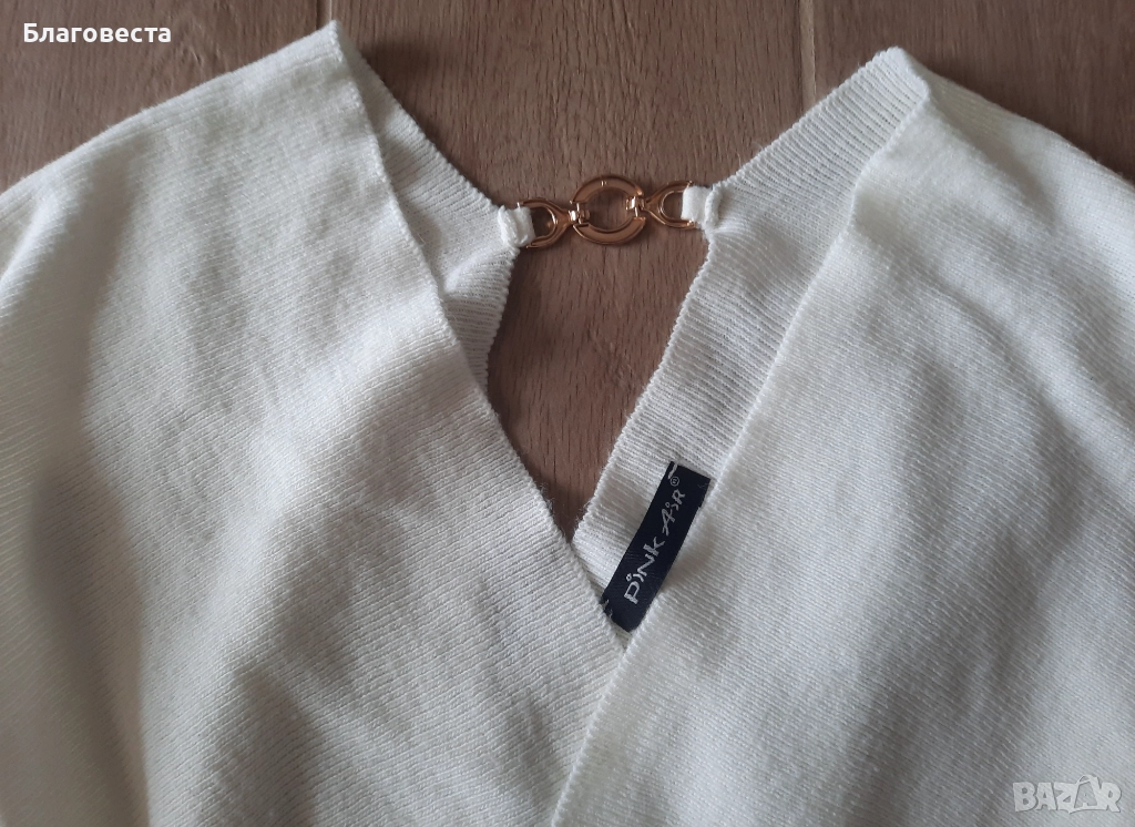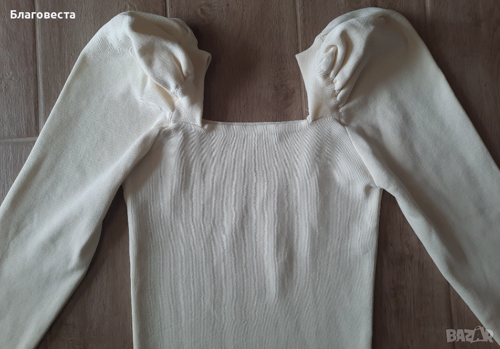 • 2. Пуловер (плетиво) в кремав цвят- размер: S/M, състояние: обличан веднъж, без забележки, в отлично състояние.