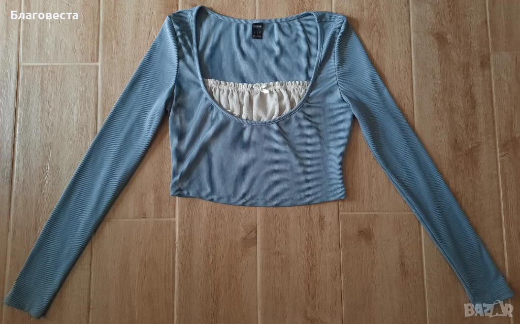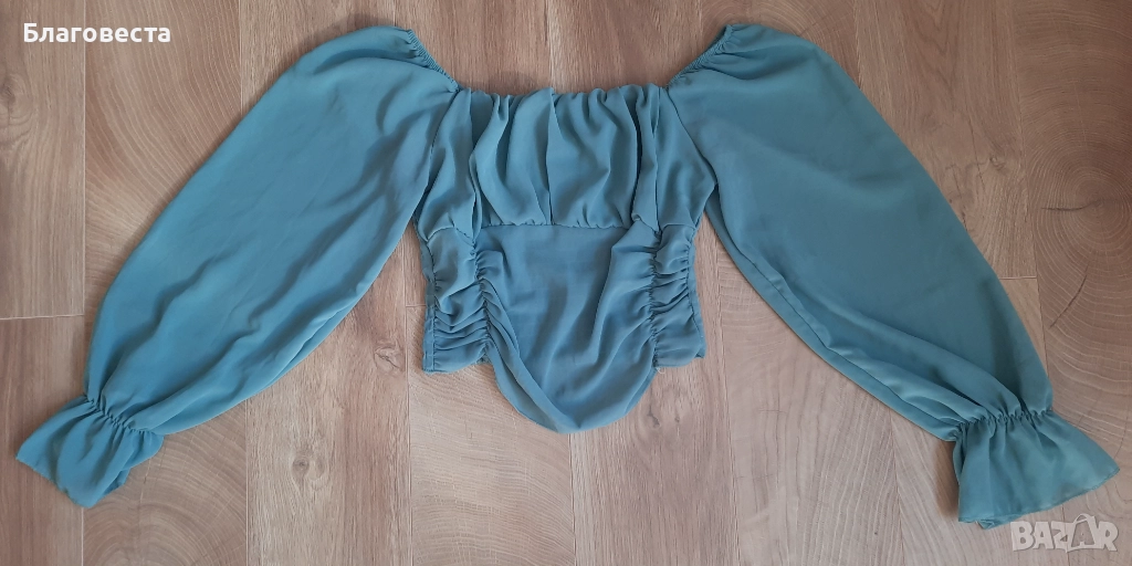 • 5. Нежна блузка в син цвят- размер: XS, състояние: Ново.
