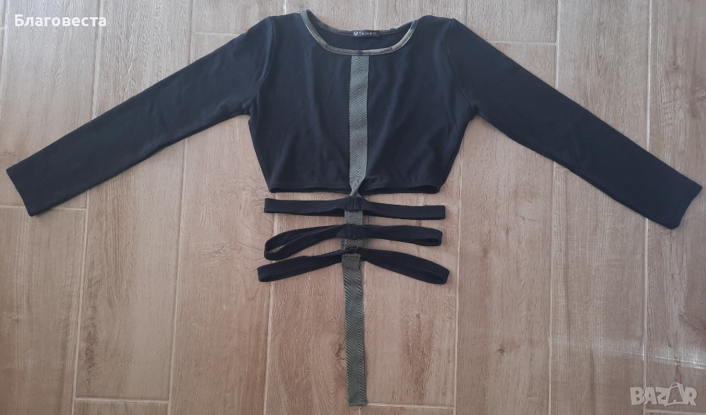 • 3. Черна блуза с ефектни разрези- размер: XS, състояние: Ново.
