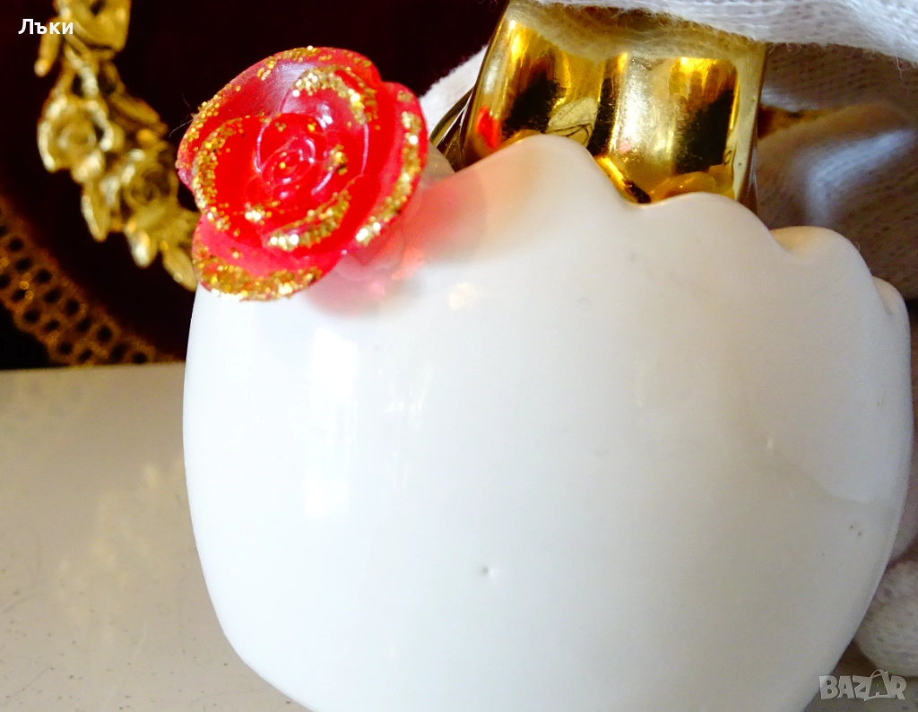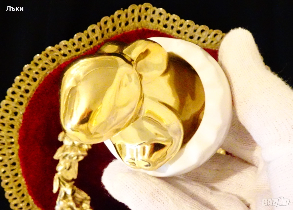 черупка с червена роза.Красиво изваяна с дебела позлата.Височина 10 см.,диаметър 6 см.