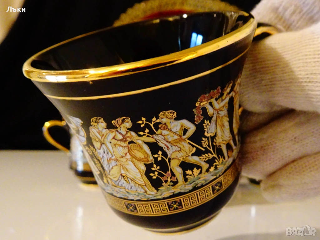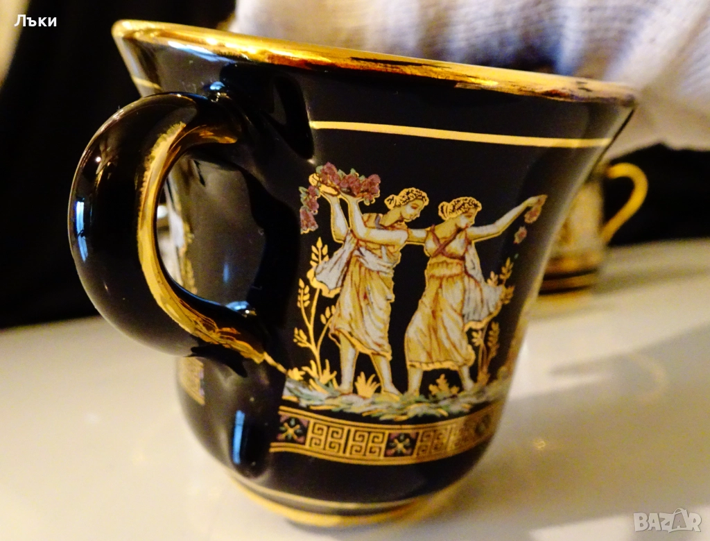 Гръцки порцеланов комплект от чаша за кафе с чиния,ръчно