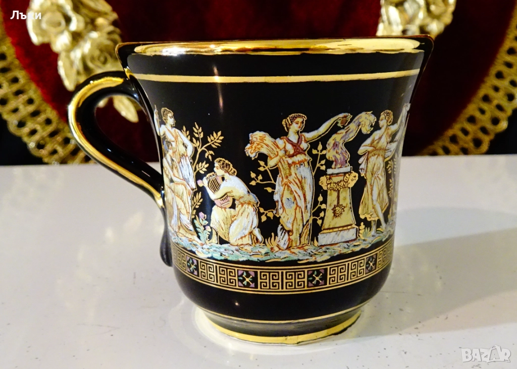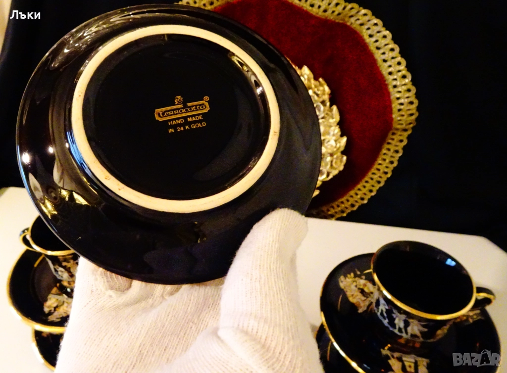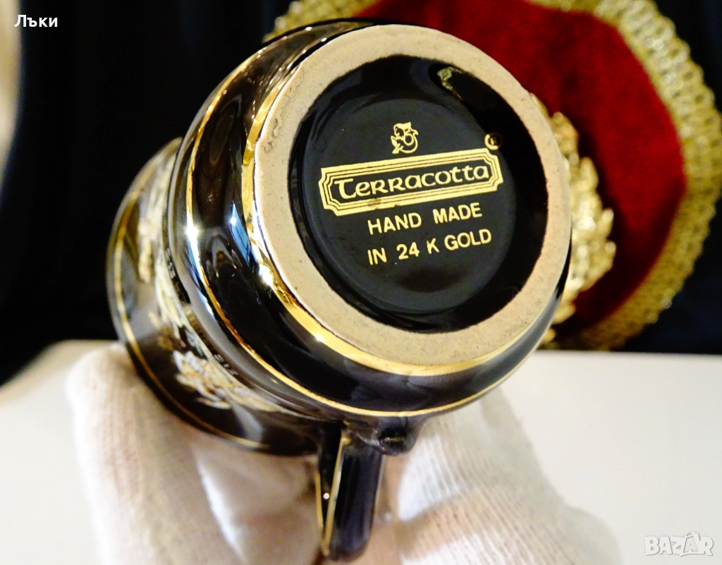 рисуван с 24 карата злато.Маркиран Terracotta Hand Made in 24 K Gold.Изобразени са красиви сцени от