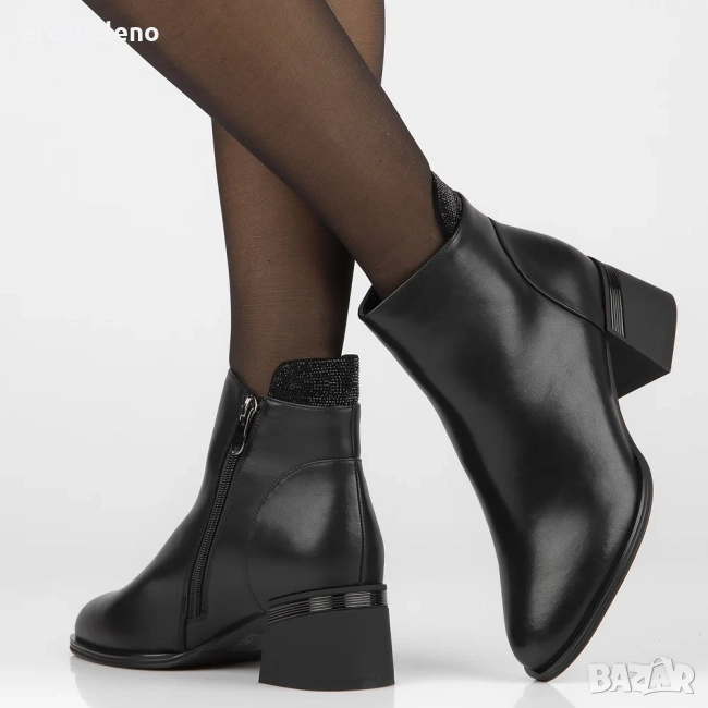 Дамски черни боти до глезена от естествена кожа с циркони Jean