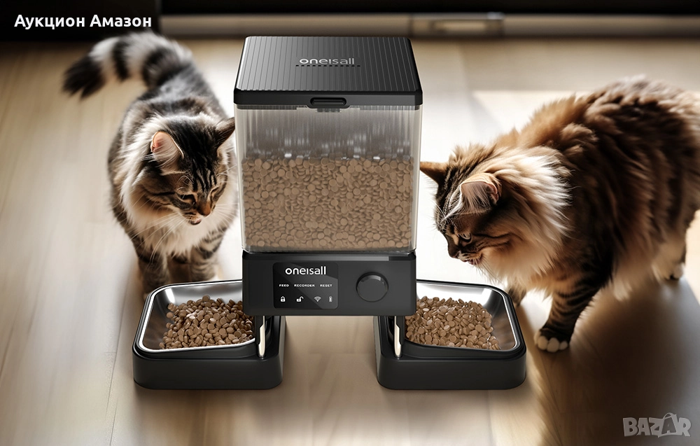 Погрижете се за здравословната диета на вашия домашен любимец. Дозаторът за храна Oneisall PFD-002 предлага 2 купи за храна, така че и двата любимеца могат да го използват едновременно. Освен това резервоарът може да побере до 2,1 кг храна, така че не се налага да го пълните често. От своя страна наличното приложение ви позволява да планирате програми и да управлявате устройството дистанционно - можете да сте сигурни, че вашият домашен любимец ще получи храна дори и да не сте вкъщи. Диспенсърът се захранва по 2 начина и може да се използва както от котки, така и от кучета.