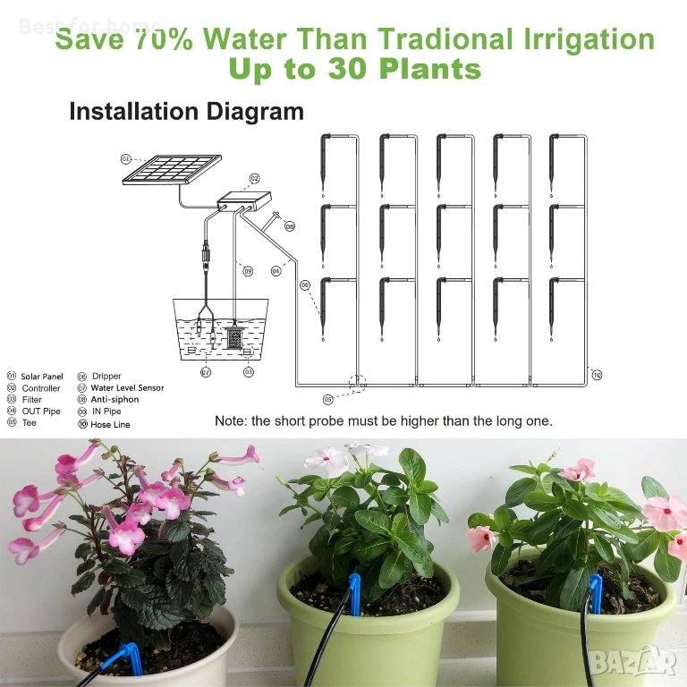 【Включи и използвай】 --- Проектиран с мисъл за дребните фермери, комплектът за соларно напояване Lewisia е решение „включи и използвай“, като се фокусира върху преносимостта, лесния монтаж и ефективното използване на естествените водни ресурси.