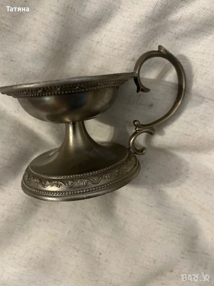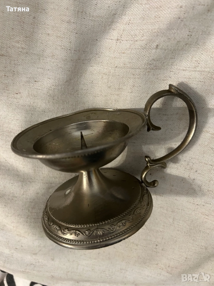 Красив свещник от калай, височина 7см, диаметър 9см, за интериор, колекция , лично ползване