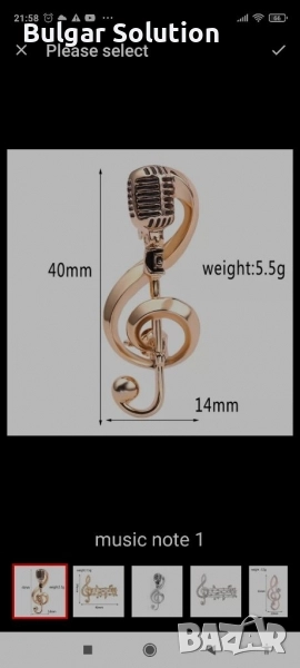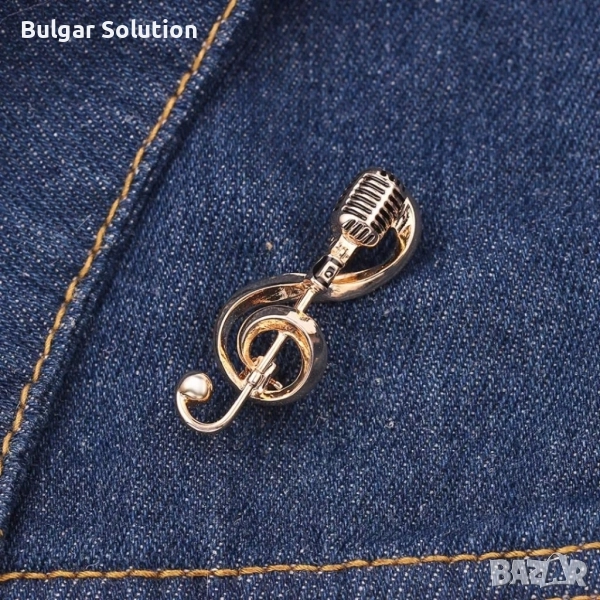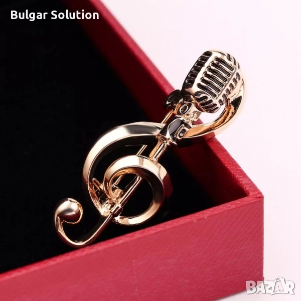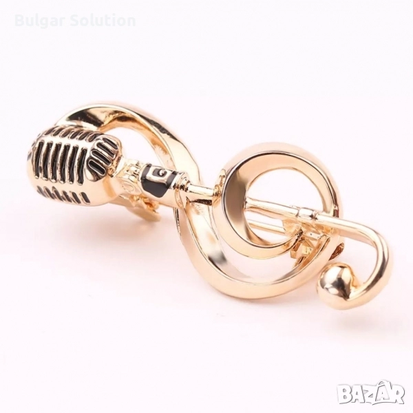 Аксесоар за фенове на музиката - музикален знак символ в 3д вариант и микрофонче на него в златен или сребърен цвят. Идеален подарък за всеки фен на музиката или музикалните изкуства. Подходящ за жени и мъже. Уникален артикул с който да зарадвате любимия/любимата.