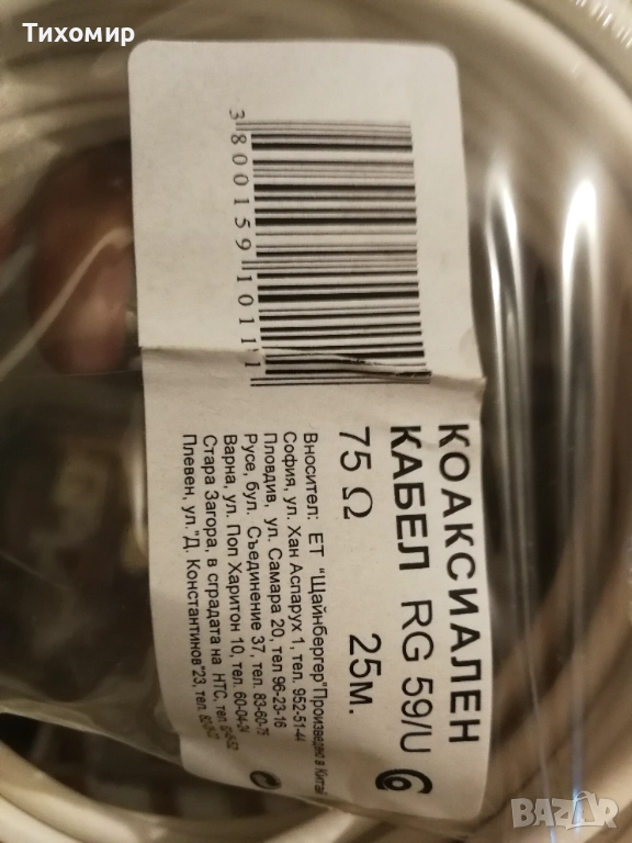 Чисто нов Коаксиален кабел RG 59/U - 25 метра (75 Ω), снимка 1 - Кабели и адаптери - 52597101 Чисто нов Коаксиален кабел RG 59/U - 25 метра (75 Ω), снимка 2 - Кабели и адаптери - 52597101 1/2