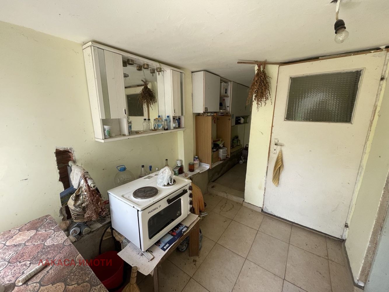 ПЪРВИЯТ ЕТАЖ се състои от кухня и стая, като има възможност да бъде обособена баня с тоалетна.