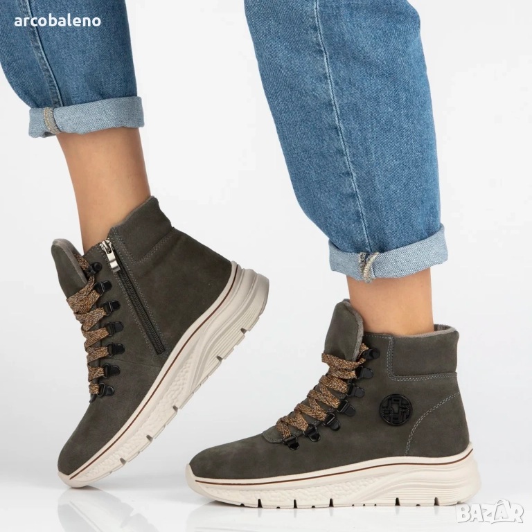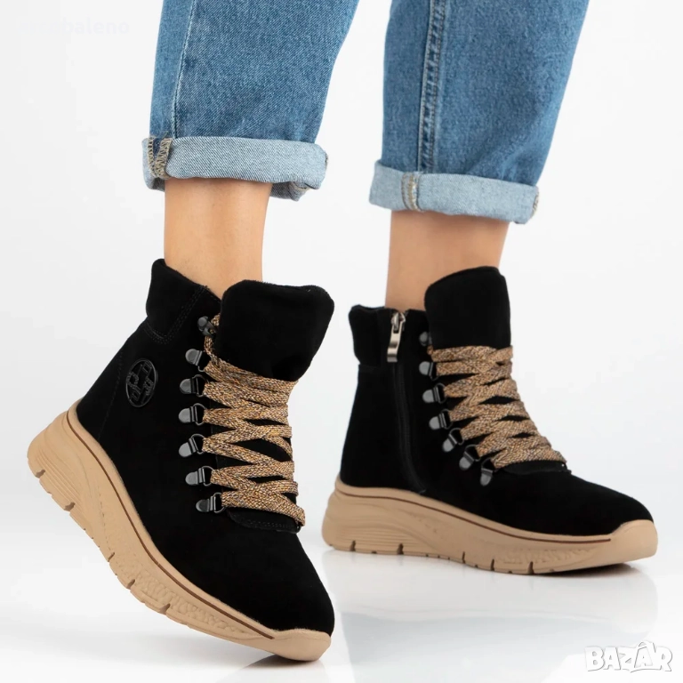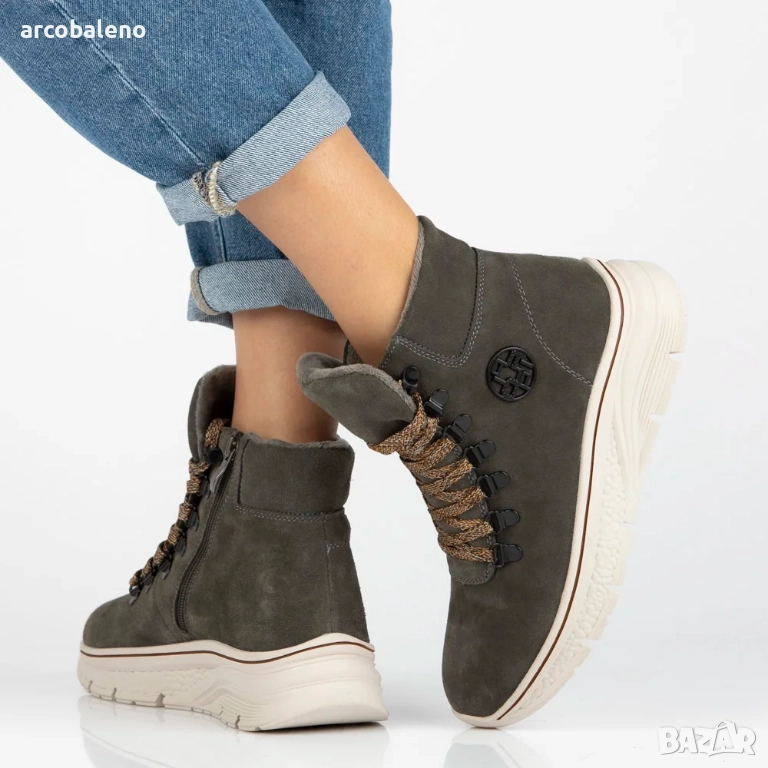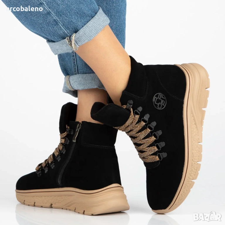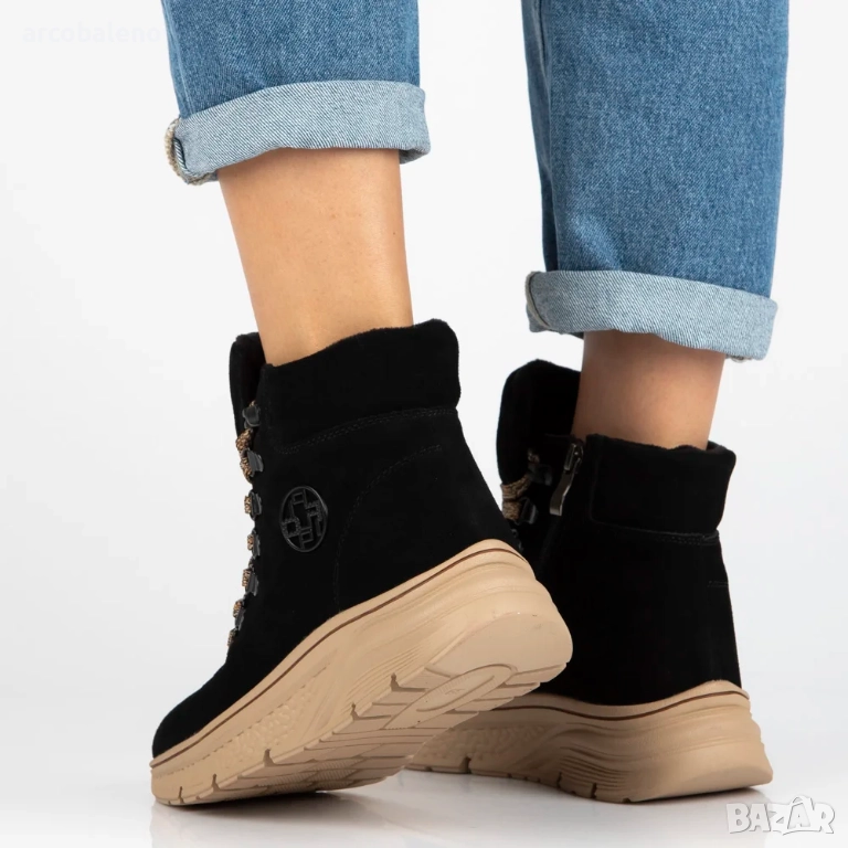 Дамски боти до глезена, изработени от естествен велур с декоративни връзки Grega, 2цвята