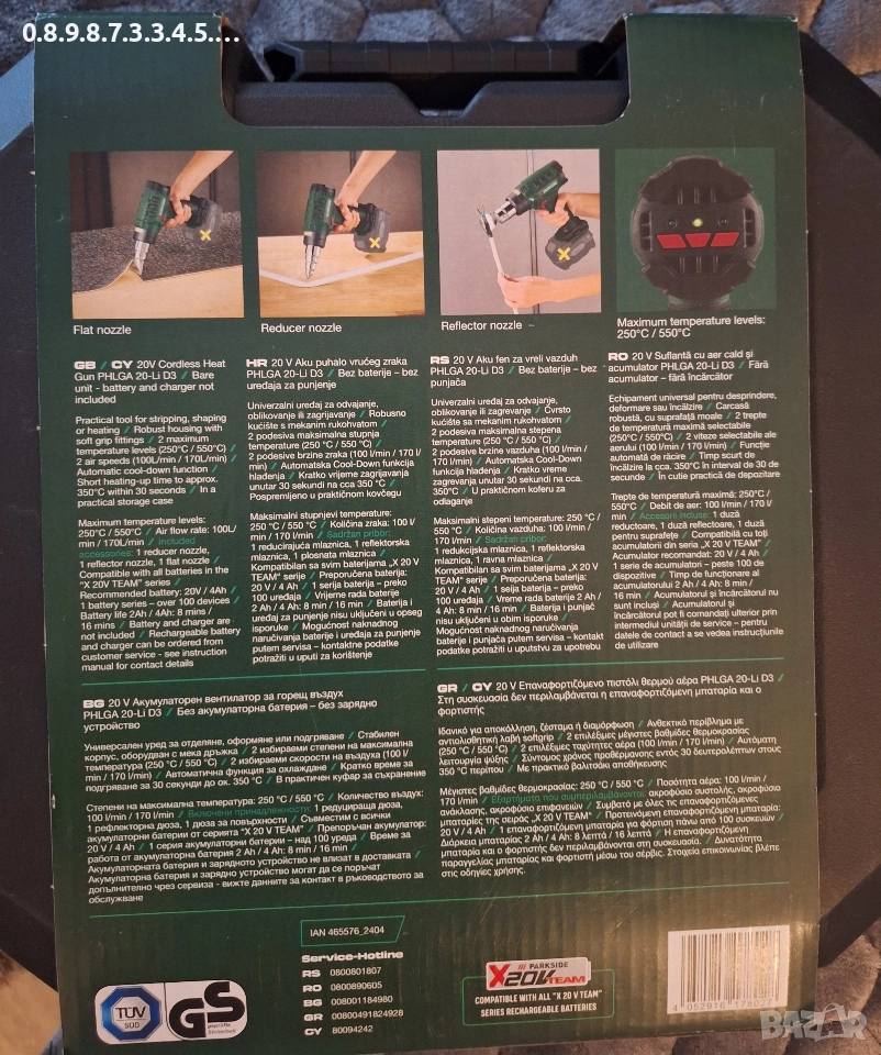 акумулаторен пистолет за горещ въздух на Парксайд 20V Parkside PHLG 20V → Обява 52598153