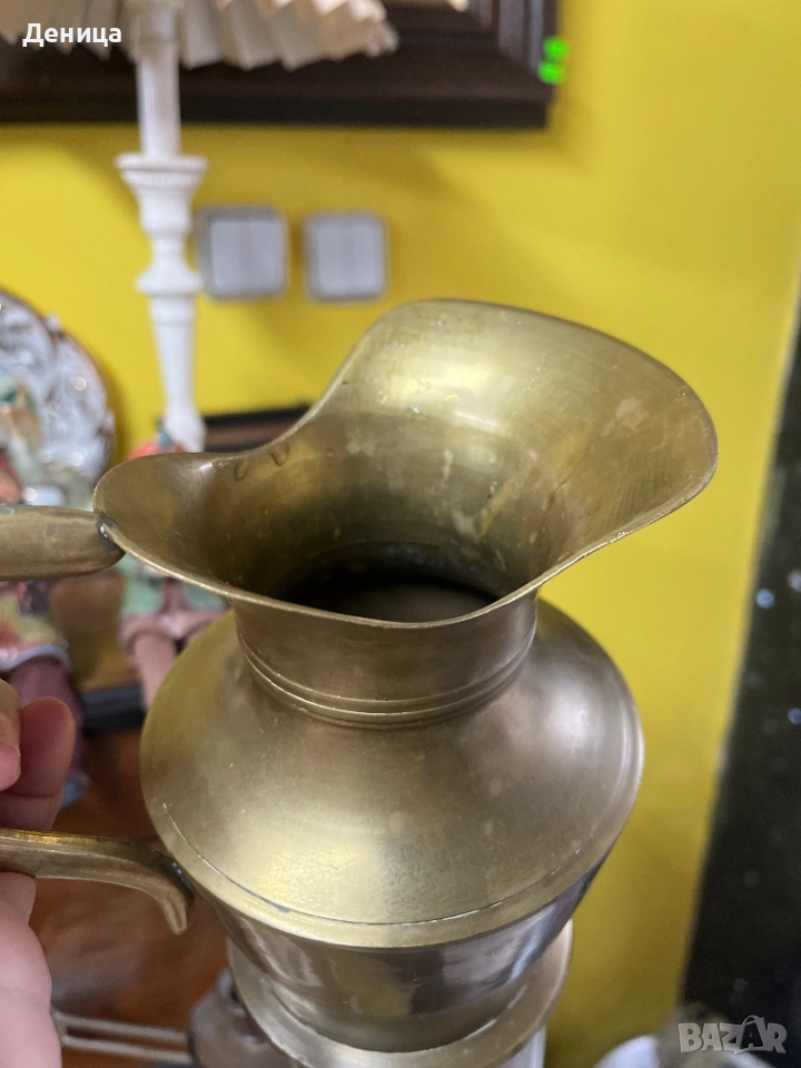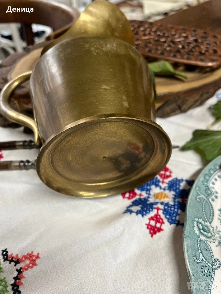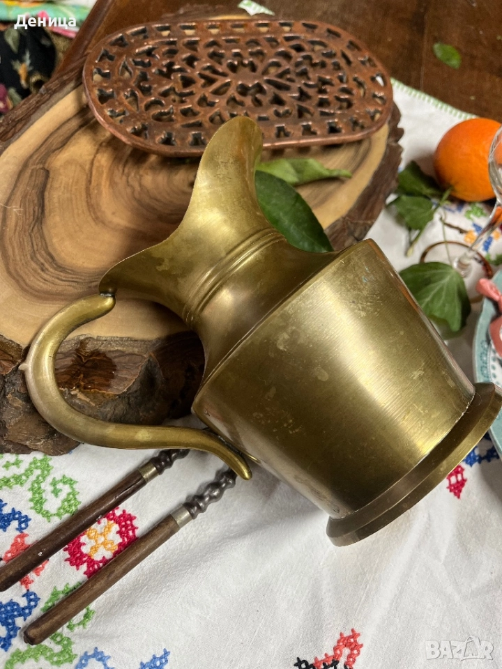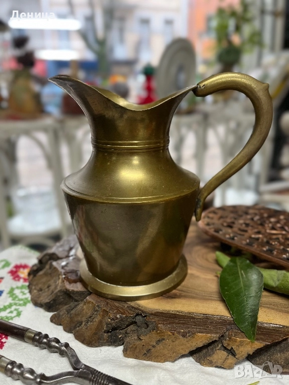 Месингова кана Индия Изящно извитата дръжка и плавно оформеният чучур придават на каната грацията на → Обява 52598805