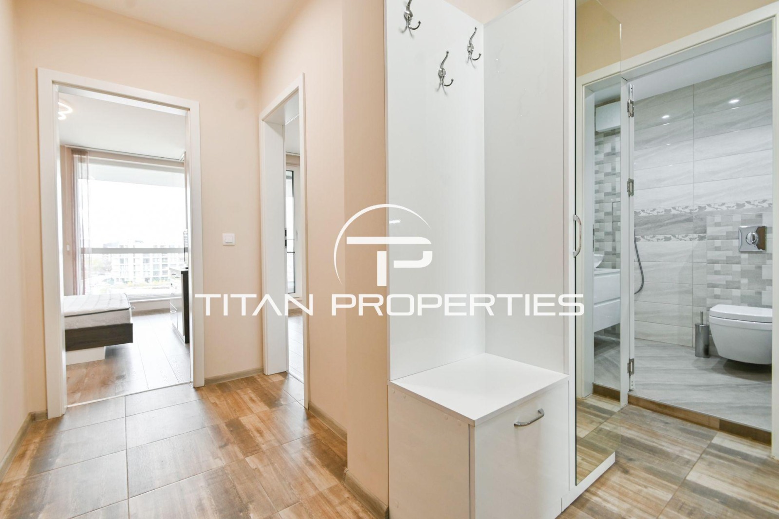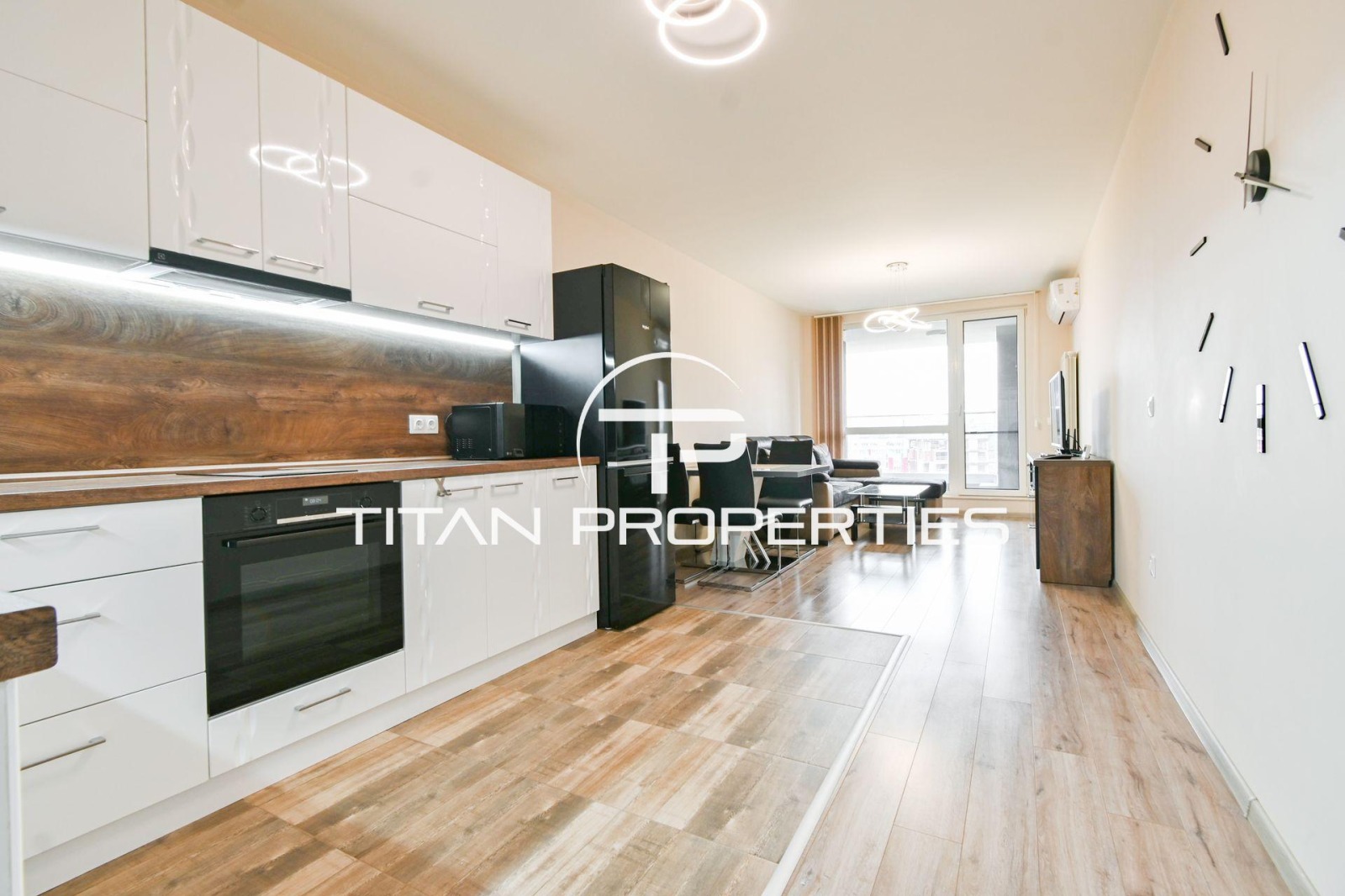 Титан Пропъртис - офис Хиподрума с радост предлага на Вашето внимание тристаен апартамент под наем в кв. Манастирски ливади, София. С обща площ от 108 кв.м. и разположение на 5-и етаж в нова 8-етажна сграда от 2022 г., имотът съчетава изискан комфорт и съвременен дизайн.