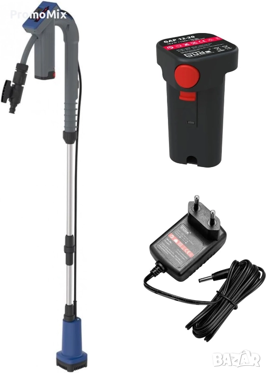 Помпата осигурява безжична и удобна работа на всякъде, като в комплекта са включени 12V Li-ion батерия с 2 Ah (ампер-часа) и зарядно устройство.