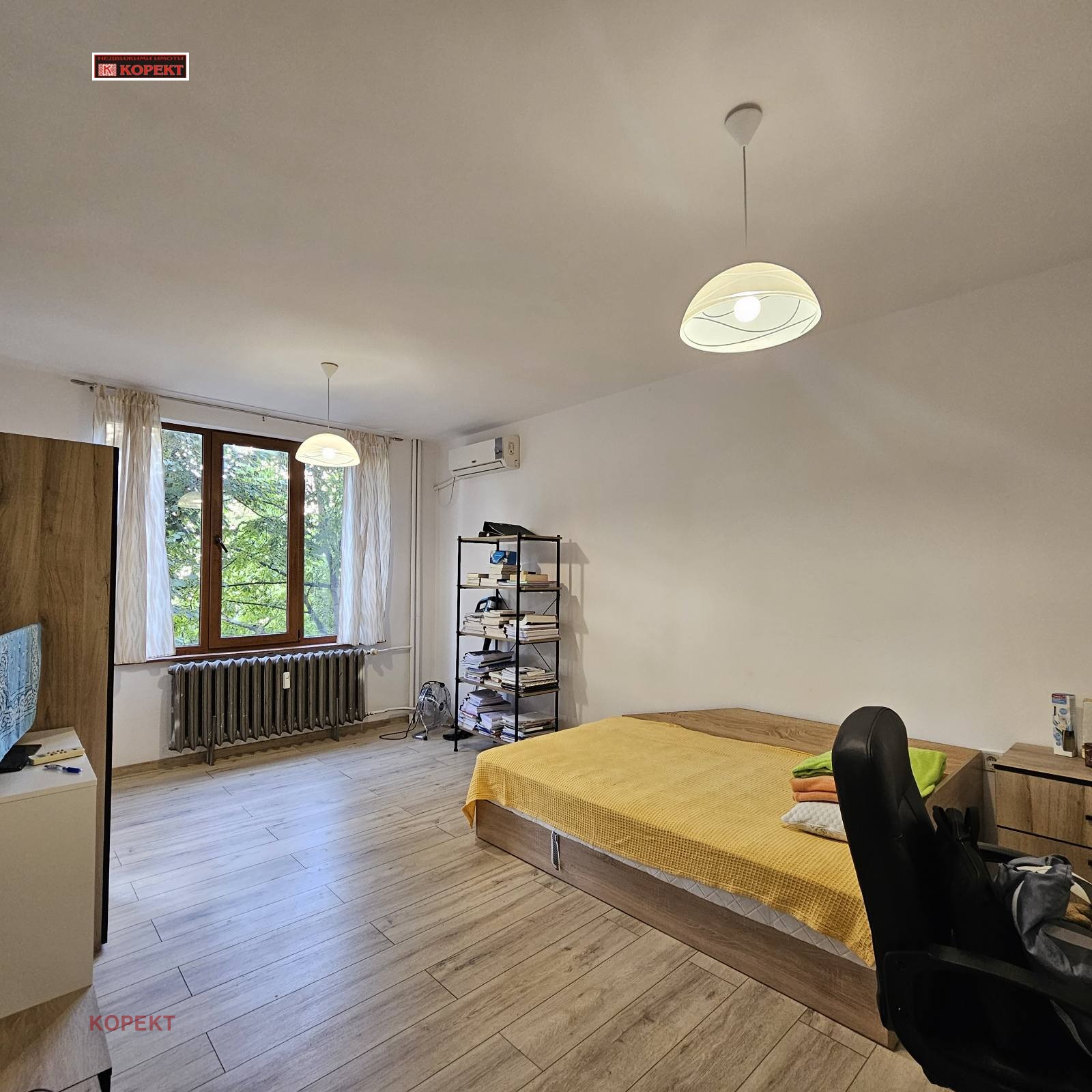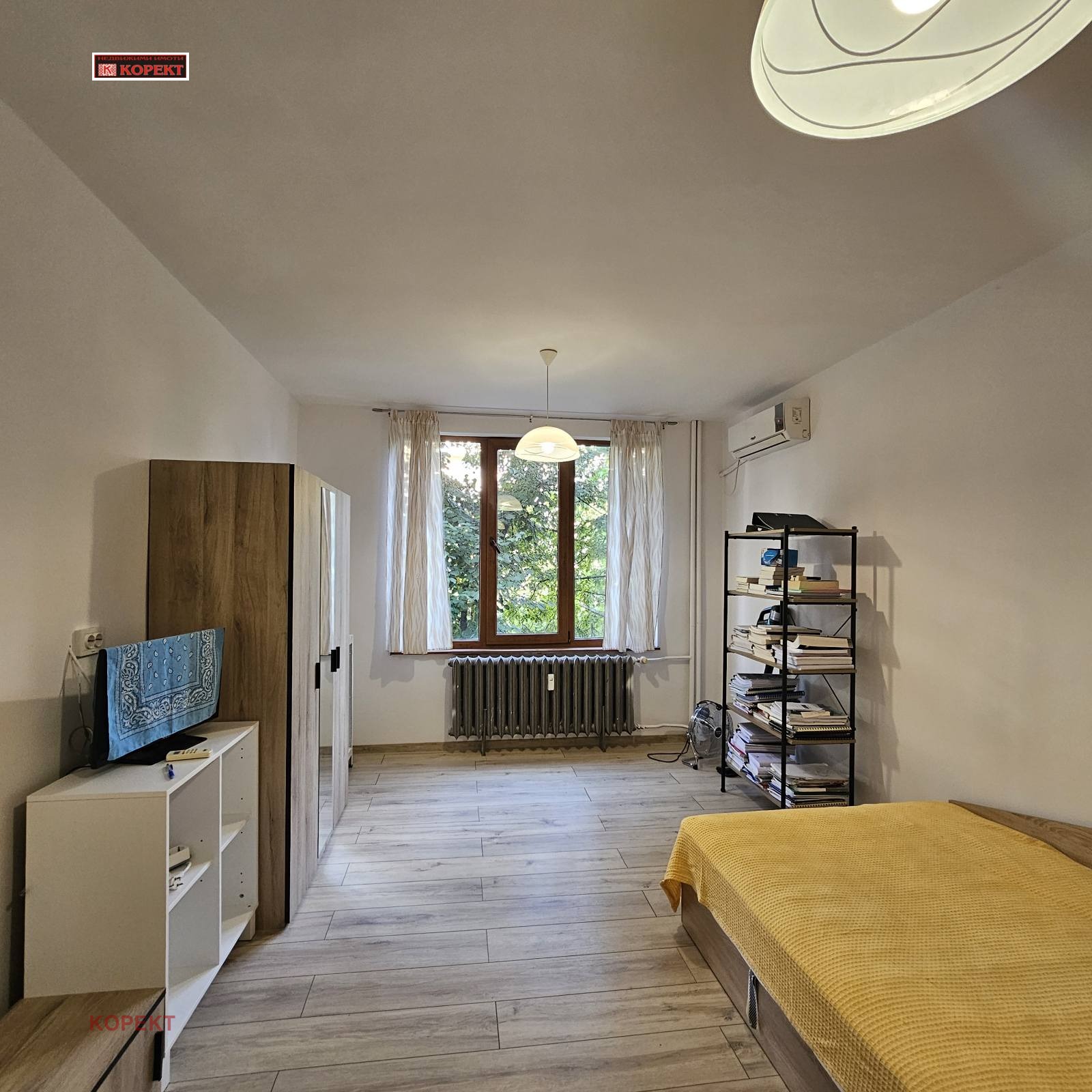 The apartment is located on Panayot Volov str., close to hotel Balkan, Medical University, Hospital, in a building with central heating, elevator. It consists of a hall, kitchen with closed balcony, bathroom, 2 bedrooms (the second one will be furnished according to the lesse`s needs). Air - conditoners, electrical appliances.