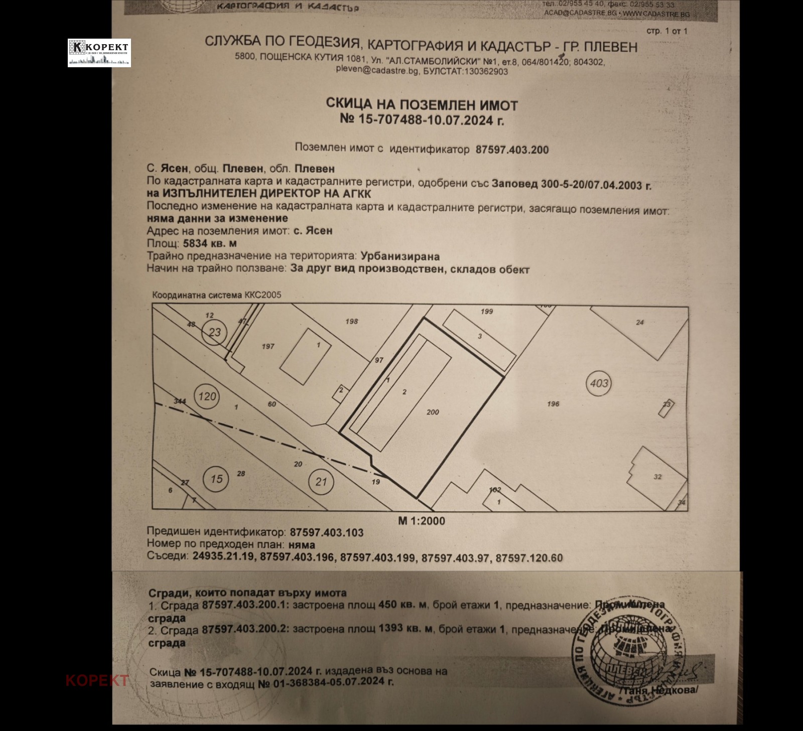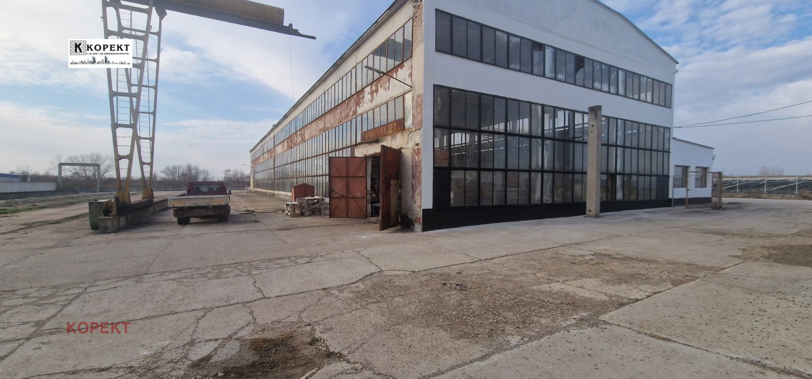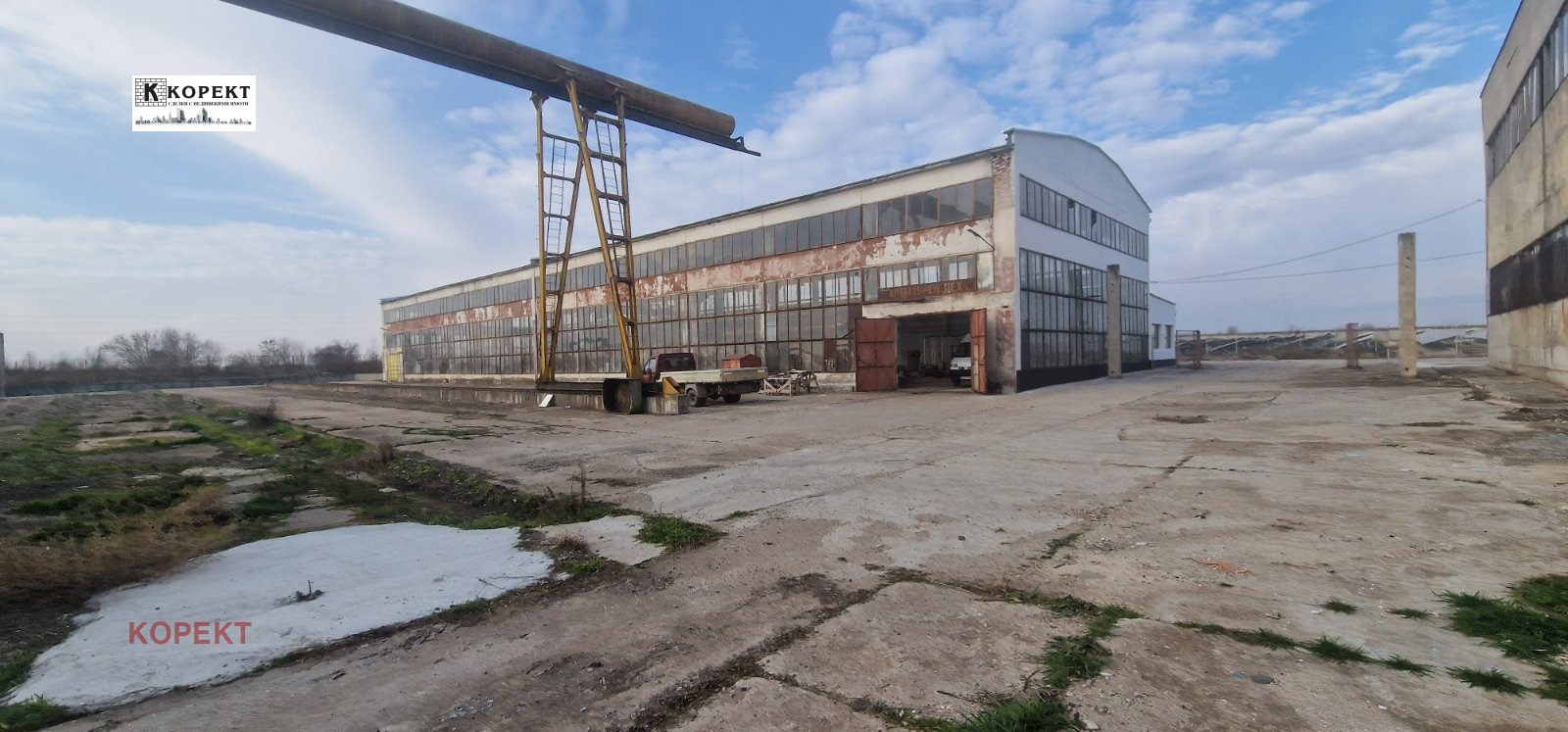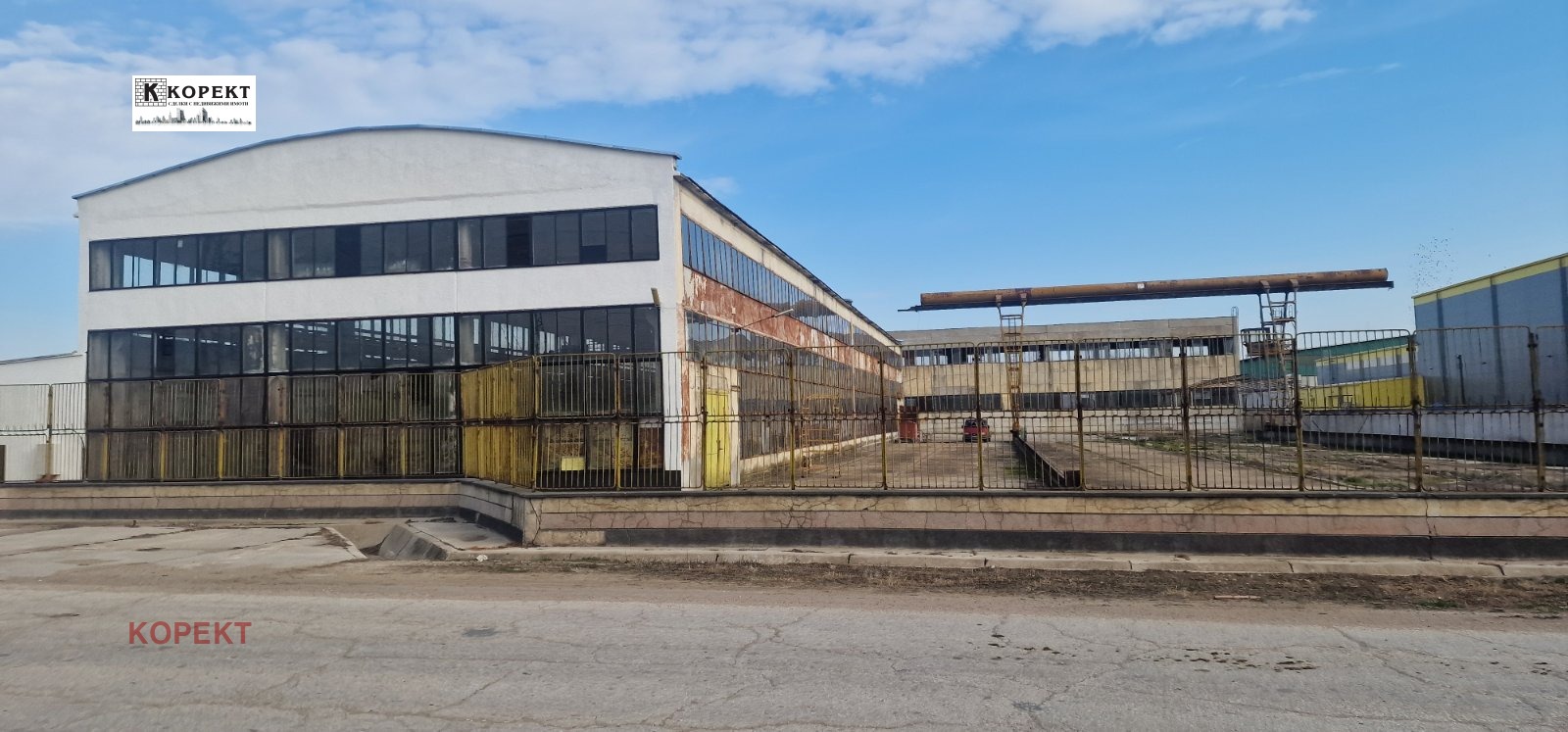 Оферта 60! Промишлен имот, разположен на 5834кв.м. в с. Ясен, до главен път. Състои се от арматурен двор, с площ от 1393кв.м. и промишленo - административна сграда, с площ от 450кв.м., в която са разположени 14 напълно отремонтирани помещения, три бани и две тоалетни със сменени ВиК, ЕЛ и канал. Със собствен водоизточник, топлоизолация, хидроизолация, изцяло сменен покрив и трафопост 400Kv. Имотът се продава с портален кран и мостови кран. Подходящ за всякакъв тип производство и с административна част.