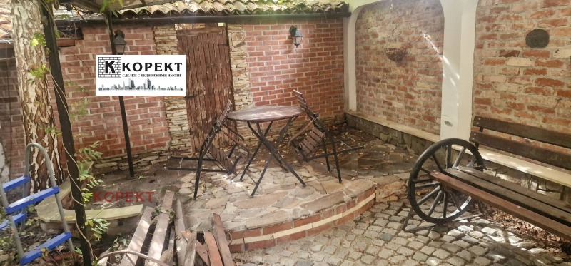 Оферта 50! УПИ с площ от 359кв.м., в района на пл. Македония, с едноетажна къща с площ от 64кв.м., състояща се от кухня, дневна с трапезария, спалня, санитарен възел (стр. 1960г.), както и сграда за търговия със статут кафе - аперитив с продажба на мезета, със ЗП от 57кв.м., състояща се от търговска зала, склад, кухня, санитарно помещение с предверие за клиенти (стр. 2001г.) Имотът е изцяло обзаведен и оборудван. За повече информация се обадете на посочените телефони.