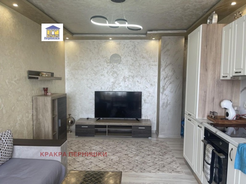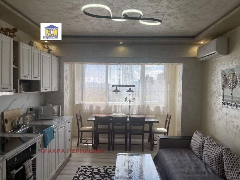 Кракра Пернишки предлага двустаен апартамент преустроен в тристаен. Намира се в ж.к Арката, в много хубав и поддържан блок. Нов асансьор, работещ с чип. Чисти и поддържани общи части. Апартамента е след основен, луксозен ремонт. Състои се от всекидневна (хол, кухня и трапезария в едно помещение) , спалня, детска и санитарен възел.Нови ВиК и електро инсталации. Има две тераси, една от които е усвоена . Подови настилки: ламинат и теракот; стени: пясъчни мазилки, травентино и тапети. Част от обзавеждането ще остане. Телефон за контакти: 0894330535 - Боряна Борисова