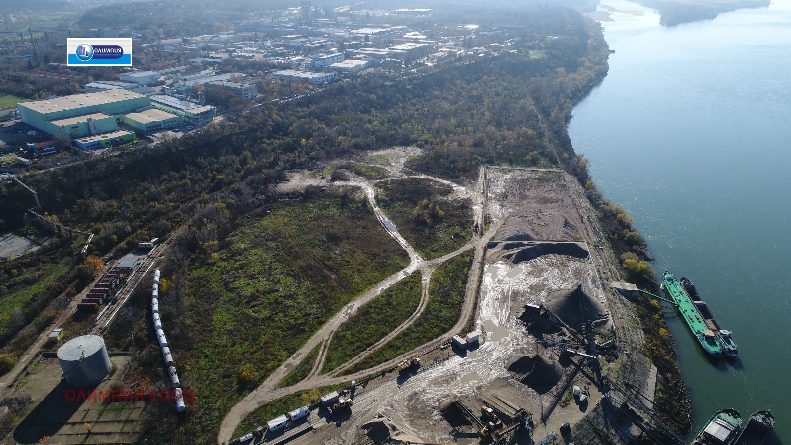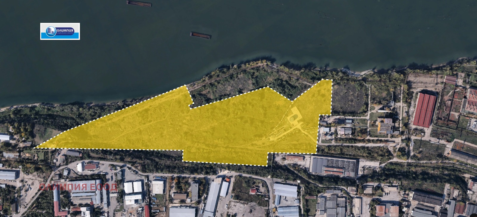 Олимпия ЕООД предлага за продажба голям индустриален терен, разположен директно на брега на река Дунав, в непосредствена близост до ТЕЦ Запад.