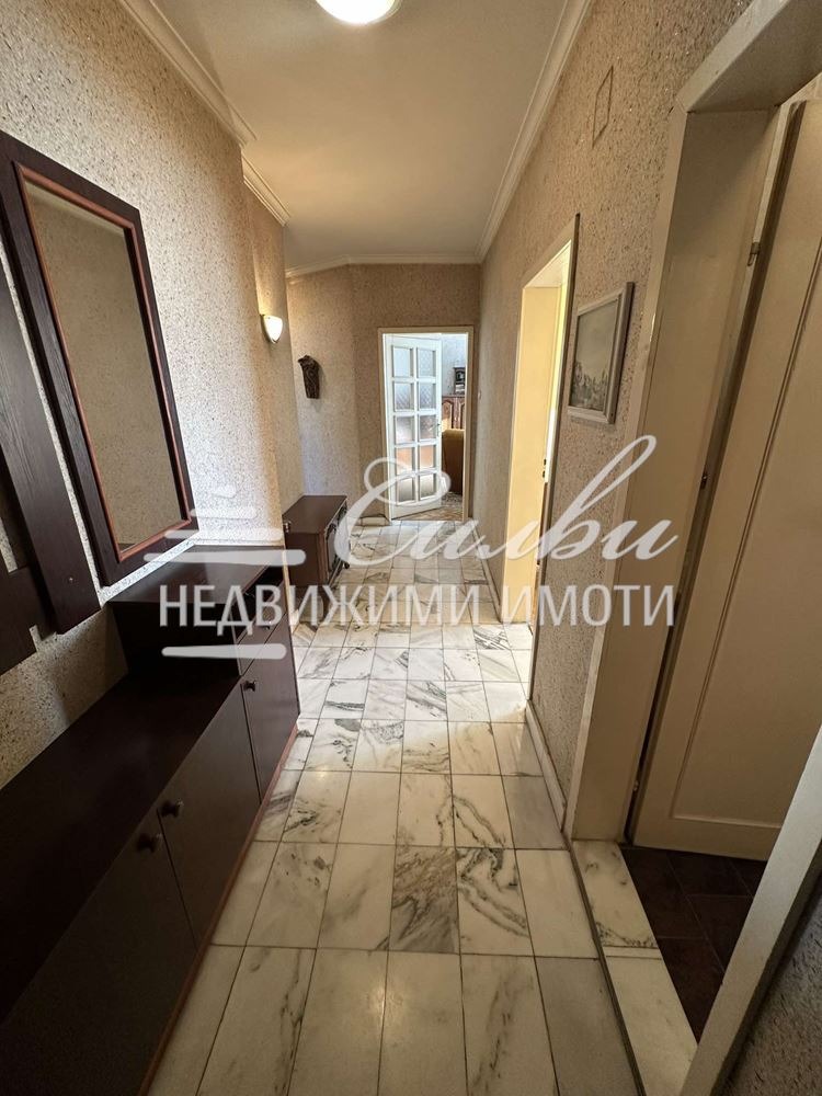 Жилището е с площ от 98 кв.м. и е разпределено както следва: просторен Г-образен коридор, всекидневна с кухненски бокс и излаз на тераса, хол с тераса, ДВЕ спални, баня, тоалет, мокро помещение. Апартаментът е в отлично състояние и се продава напълно ОБЗАВЕДЕН. Отоплението е решено посредством КЛИМАТИК. Подовите настилки са от естествен дъбов паркет и теракота. Към имота има ИЗБА /12кв.м./ и ТАВАНСКО ПОМЕЩЕНИЕ. Има възможност за закупуване на ГАРАЖ./17кв.м./, с отделни партиди за ток и вода.
