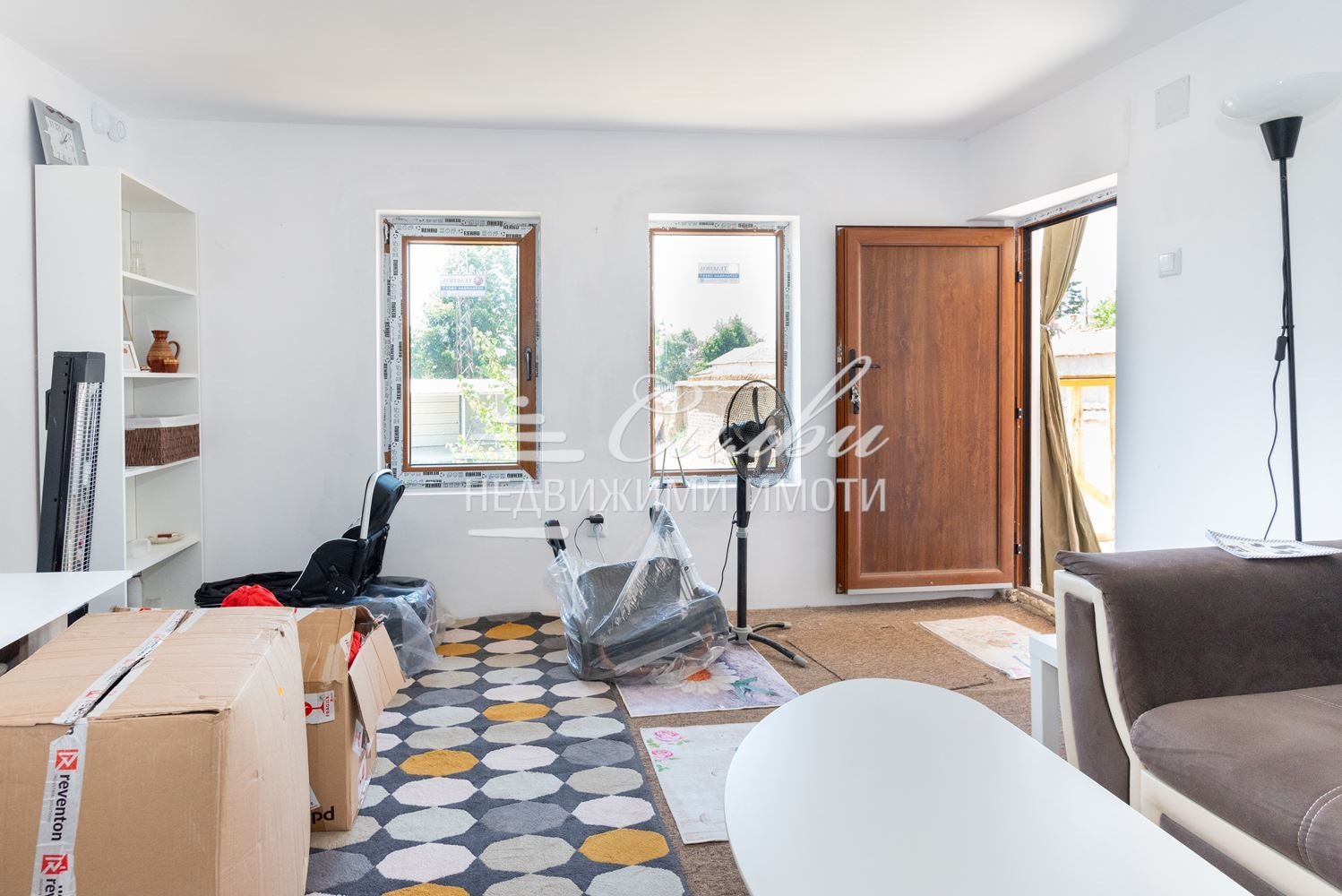 Двуетажна къща с ГАРАЖ - с.Ивански. Къщата се намира в началото на селото на АСФАЛТОВ ПЪТ ! Състои се от: СУТЕРЕН, където има обособена кухня с всекидневна; ПАРТЕРЕН ЕТАЖ, на който са разположени баня с тоалет и една стая; и чрез външно стълбище се стига до ВТОРИ ЕТАЖ, където има още ДВЕ стаи с веранда/тераса. Къщата е след РЕМОНТ и следните подобрения: Покривът е РЕМОНТИРАН, ИЗЦЯЛО подменена PVC дограма, подменени ВиК и Ел.инсталации, подовите настилки са от мокет. Баня и тоалет в отлично състояние. Продава се ОБЗАВЕДЕНА с наличните МЕБЕЛИ и ЕЛЕКТРОУРЕДИ. Дворът е РАВЕН и изключително добре поддържан. Има място за отдих, външна чешма и нов ГАРАЖ за две коли с ролетна врата.