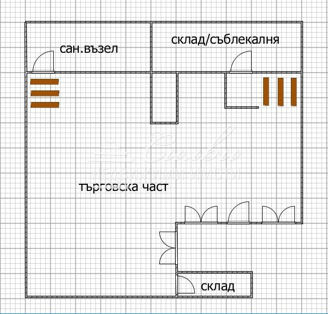 Продава се търговско помещение със статут на МАГАЗИН в централната част на града. Помещението е с площ от 124 кв.м. и се намира на сутеренен етаж в жилищна сграда. Състои се от: търговска част, две складови помещения и санитарен възел. Има излаз към ГЛАВЕН булеварда с човекопоток! Представлява едно голямо помещение, тип open space (отворено пространство), което може да бъде обособено като отделни работни/търговски зони. Магазинът е в много добро състояние и е подходящ както за търговска дейност, така и за офис, салон за красота, студио, ателие, сервиз или административен обект. Имот с отличен потенциал за бизнес или инвестиция!