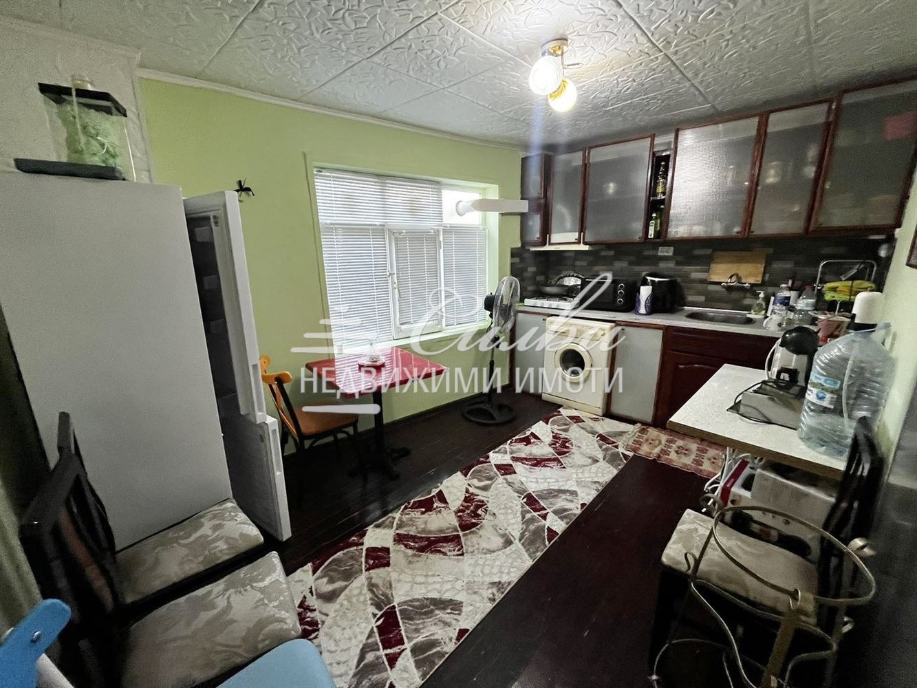 Двуетажна ТУХЛЕНА КЪЩА на плоча с РЗП 150 кв.м - ТОП ЦЕНТЪР !!! Разпределена е на: 1-ви ЕТАЖ 75 кв.м. антре, хол, спалня, кухня с трапезария, баня и тоалет заедно; 2-ри ЕТАЖ 75кв.м. антре, 2 спални, кухня с трапезария, баня и тоалет заедно. Подобрения: ПВЦ дограма, ВЪТРЕШНА ИЗОЛАЦИЯ, НОВ ПОКРИВ, LED осветление. Подовите настилки са: ламиниран паркет, дюшеме и теракота. Отоплението е решено посредством 4 КЛИМАТИКА. Жилището се продава напълно ОБЗАВЕДЕНО с мебели и електроуреди! Към имота принадлежи ТАВАНСКО и ИЗБЕНО помещение.