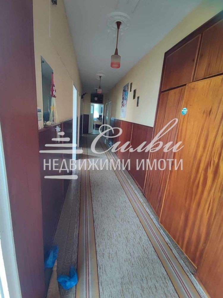 Два етажа от ТРИЕТАЖНА ТУХЛЕНА КООПЕРАЦИЯ. Етажите са идентични /единият от които е партерен/, с площ от 127 кв.м., разпределени на: коридор, просторен хол, 3 спални, кухня, трапезария, тераса, баня и тоалет заедно. Жилището е в поддържано състояние, но има нужда от ремонт. Подовите настилки са от естествен паркет, дюшеме и теракота. Към имота има собствен ДВОР /500кв.м./, ГАРАЖ, външна постройка, пригодена като лятна кухня /20кв.м./ и две ИЗБИ /14кв.м./ . Изложение: Изток/Запад/ЮГ.