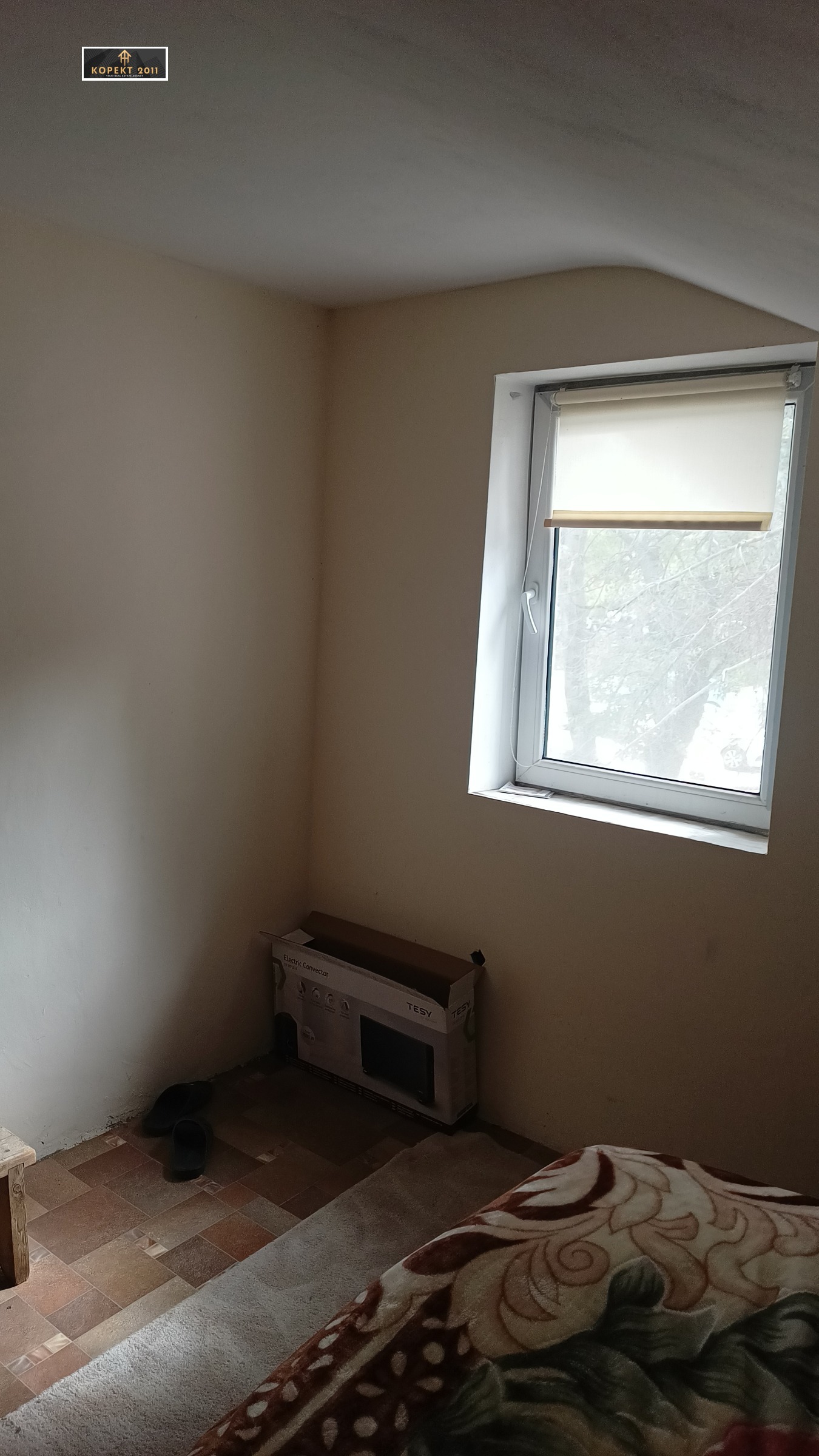 🔴 Къщата е на два етажа свързани посредством вътрешни стъпала и представлява първи етаж - кухня с трапезария, баня с тоалетна и стая; втори етаж две спални едната със скосения.