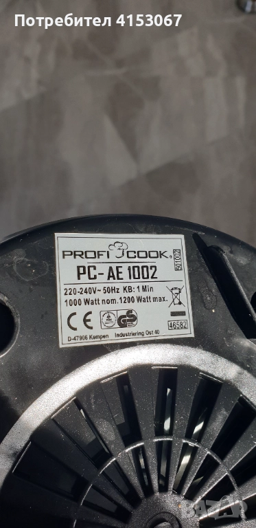 Предпазна верига - работа е възможна само с прикрепен контейнер - 230 V, 50 Hz, макс. 1200 W; обороти в минута 16 000 макс.