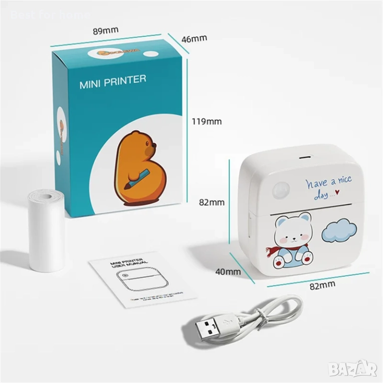 Този принтер е миниатюрен и преносим. Можете лесно да го поставите в джоба или чантата си, удобен за носене и използване по всяко време и навсякъде.