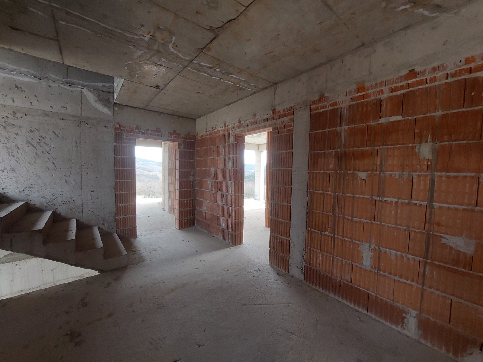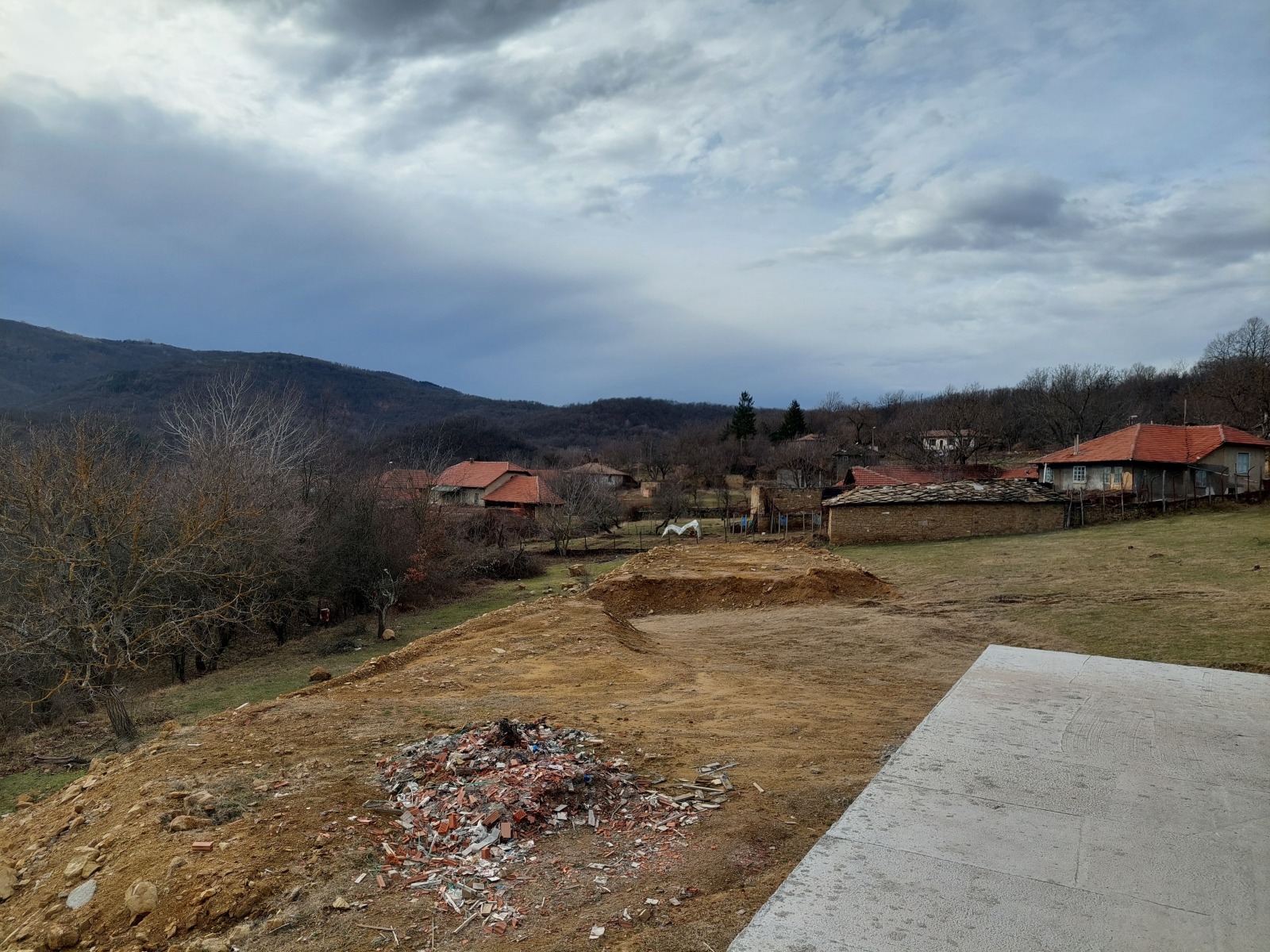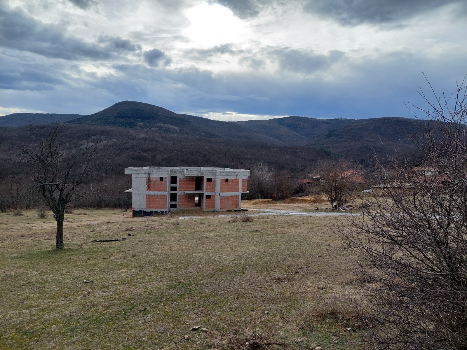 Триетажна къща с голям просторен двор, с идеално местоположение в китно балканско село, в близост до главен път В.Търново-Стара Загора, на 23 км южно от гр.В.Търново. Целогодишен достъп по улици с асфалтова настилка. Дворното място е на южен склон, с денивелация, с прекрасна гледка към хълмовете, граничи от юг с гора. Къщата е масивна, монолитно изпълнена, със стоманобетонова носеща конструкция, с разгъната застроена площ от 614 кв.м. Състои от два надземни и един полуподземен етаж. Трите етажа са свъррзани с вътрешно стълбище, обособени са два входа- централен от юг и втори от север на сградата. Полуподземният етаж е с площ от 175 кв.м, и са разположени три складови помещения, две спални със санитарни възли, две хоби стаи с коридор и санитарен възел, коридор и стълбище. Първият етаж е със застроена площ от 235 кв.м и се състои от коридор, санитарен възел, склад, кухня, дневна трапезария, помещение за релакс с парна баня, душ и сауна. Вторият етаж е със застроена площ от 204 кв.м и се състои от фоайе, склад и пет спални, всяка със санитарен възел и тераса. Основните помещения са ориентирани на юг и са слънчеви и просторни. От втория етаж има достъп до покрива, с панорамна гледка във всички посоки. Степен на завършеност -'груб строеж' /акт 14., с партида за ток и собствен водоизточник. Предвидено е изграждане на тенискорт.