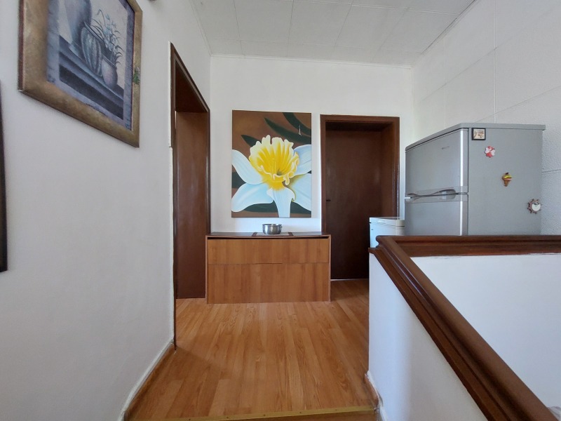 Атрактивна къща сгушена в Старата част на гр.В.Търново, наа пешеходно разстояние от Самоводската чаршия, с невероятна панорама към хълмовете 'Царевец' и 'Трапезица', където спокойно от двора можете да следите спектакъла 'Звук и светлина', едновременно предлагаща и уют и удобство. Къщата е на два етажа, със стоманобетонова конструкция, с РЗП 120 кв.м, ремонтирана и обзаведена с всичко необходимо, т.че да можете спокойно да се нанесете и да се наслаждавате на гледката, която имотът предлага. На първия етаж са разположени три спални, баня с тоалетна, коридор и вътрешно стълбище към втория етаж, а на втория етаж е обособена голяма дневна- трапезария с кухненски бокс, с голяма тераса от юг, гардеробна/дрешник и коридор. В североизточната част на двора е построена допълнителна постройка - лятна кухня. Дворното място е с площ 285 кв.м, терасирано на нива с външно стълбище за достъп към откритата площадка пред къщата, с алеи, площадки и обособени площи с декоративно озеленяване. Предвид местоположението и характеристиките на имота е възможно ползването му и като къща за гости.