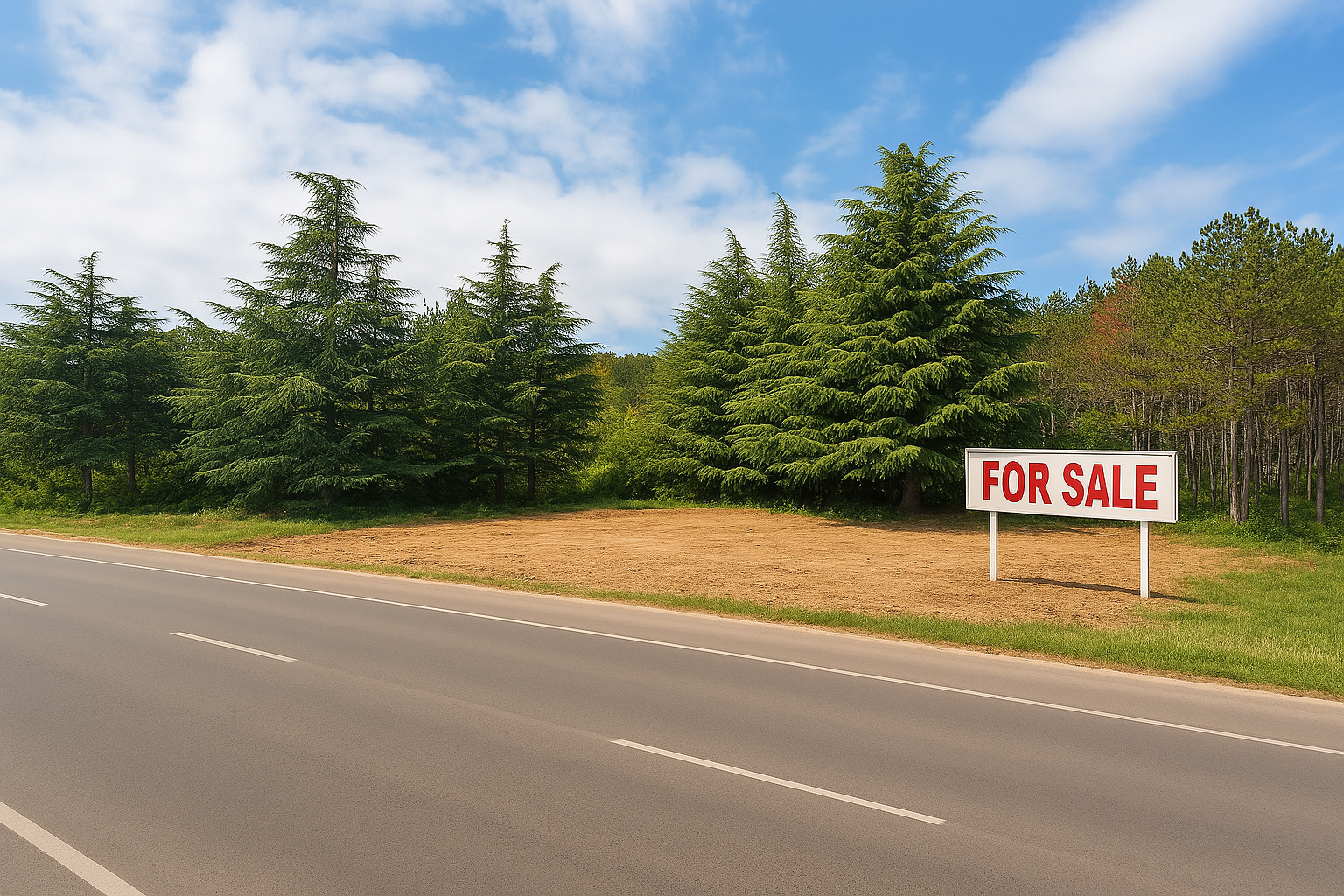 Парцел, с лице на главния асфалтов път (45м). Над картинг пистата.