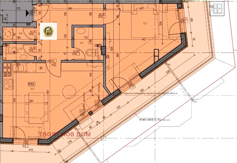 Отделно покривна тераса към апартамента 25.08 кв.м.