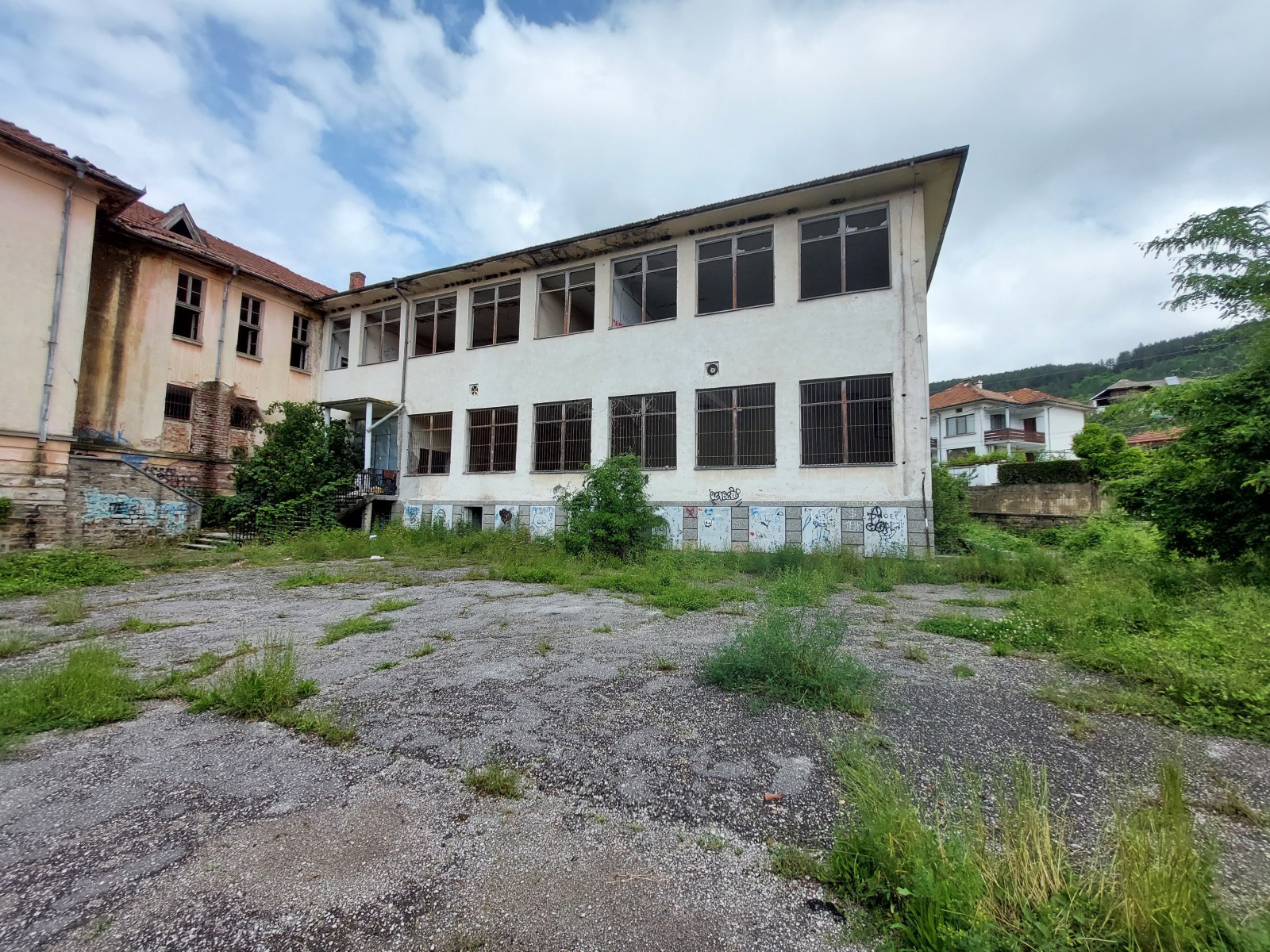 Предлагаме уникален имот в центъра на с.Присово, разположен само на 5 км южно от гр.Велико Търново и на 900 м от главен път от републиканската пътна мрежа. Парцелът е с площ от 3550 кв.м, с лице на три улици, ограден по всички граници, върху който са построени две масивни, двуетажни сгради, с частично вкопани сутеренни етажи (бивше училище), с носеща стоманобетонова конструкция, със застроена площ 650 кв.м и РЗП 2075,70 кв.м. Сградите са в добро конструктивно състояние, подходящи за преустройство в хоспис, старчески дом, малък хотел, жилищна или административна сграда. Разположението му предоставя спокойствие и уют за живеене или работа - уникална възможност за инвестиция.