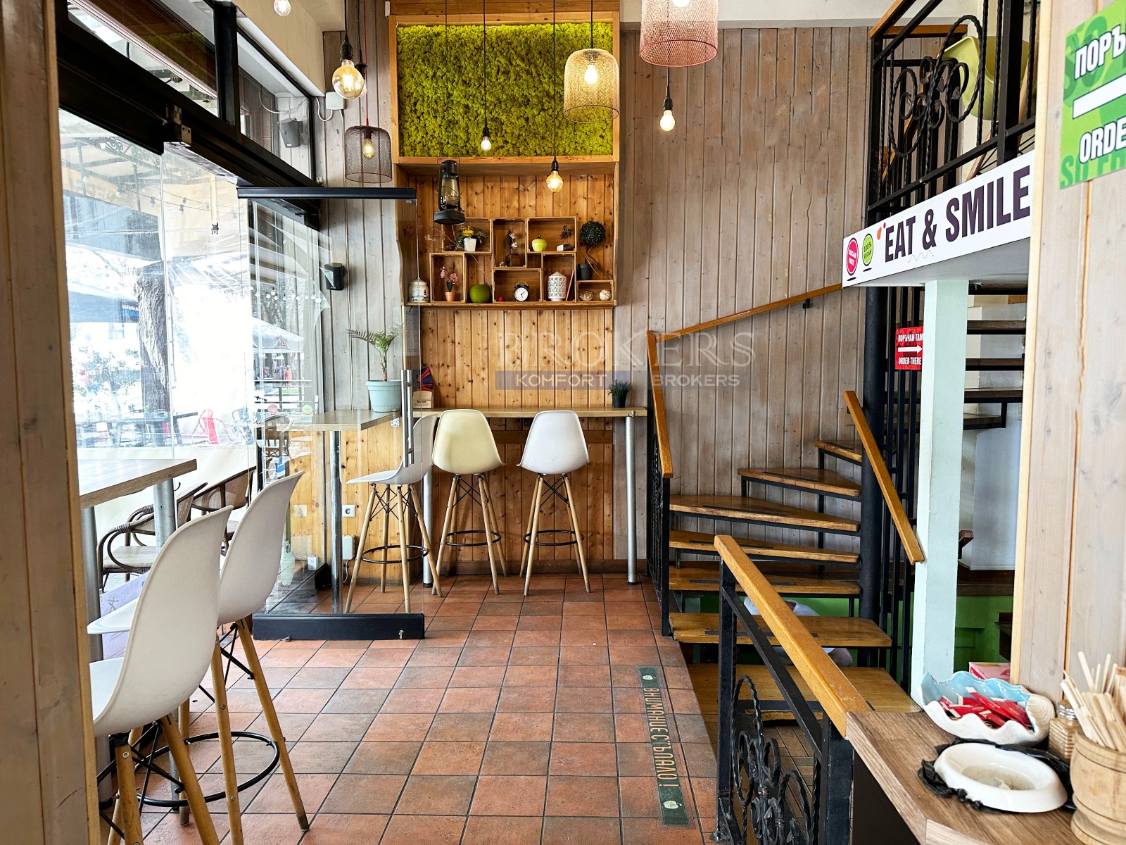 Освен местоположението му това, което го прави изключителен е двойният статут - магазин и кафе-сладкарница, което позволява ползването му в различни направления.