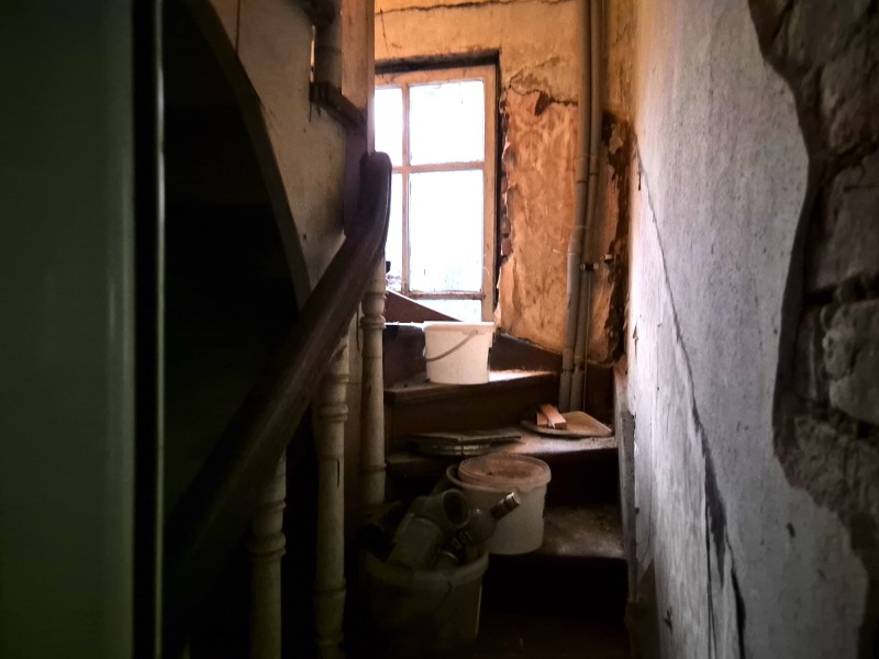 Жилище в идеалния център на гр.В.Търново, на тиха улица, в близост до паметника 'Майка България', сградата на Здравната каса, хотел 'Етър', ВТУ ' Св.Св.Кирил и Методий', множество заведения. Представлява част от първия етаж на двуетажна жилищна сграда със застроена площ 78,36 кв.м, с прилежащи: таванско помещение с площ 21,32 кв.м и 1/4 ид.част от дворното място, цялото с площ 538 кв.м. Състои се от: дневна с кухненски бокс, входно антре, баня-тоалетна, две стаи и остъклена тераса. Достъпът до тавана е по вътрешно дървено стълбище.