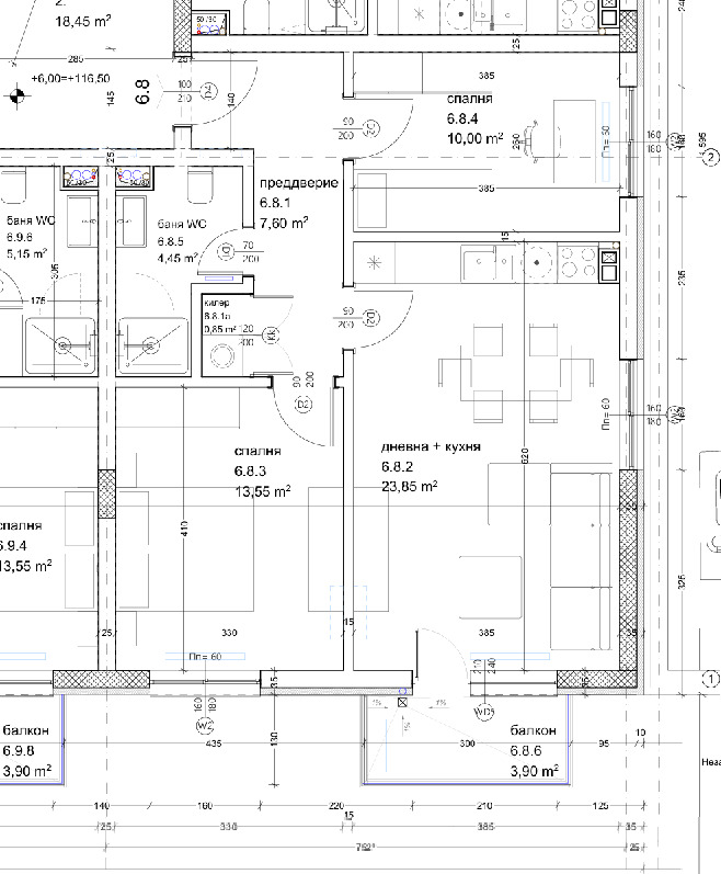 Дневен тракт с кухненски бокс 24 кв.м.;