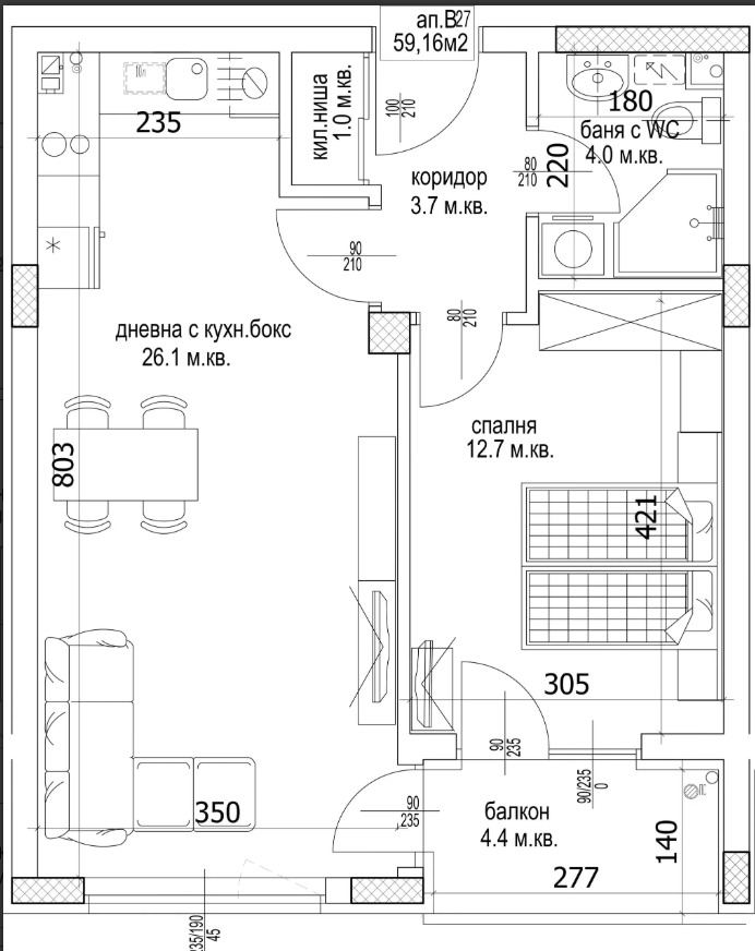 -баня - тоалет: под циментова замазка, стени варо-циментова мазилка;