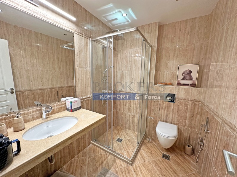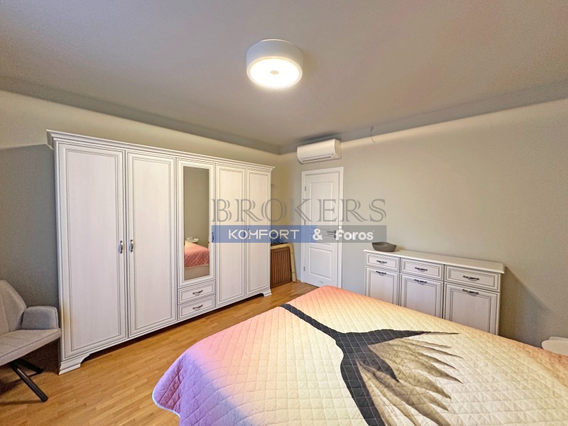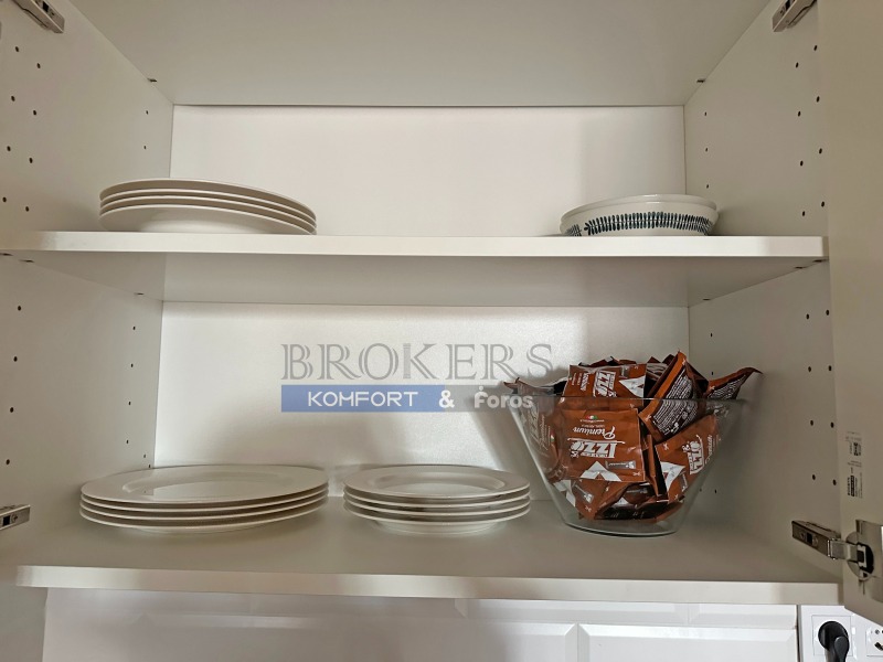 Подовите настилки са естествена паркет. Отоплението и охлаждането са решени с климатици. В жилището не е живяно и всички вещи и уреди са нови. На разположение на бъдещите наематели са хладилник с фризер, съдомиялна машина, фурна, керамични котлони, абсорбатор, прахосмукачка, пералня, битови електроуреди, посуда.