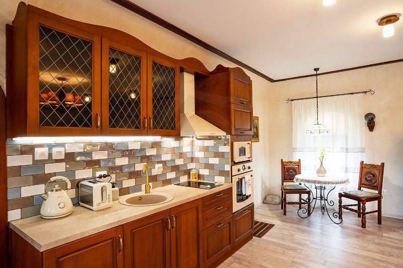 Самостоятелна сграда с прилежаща земя, разположена в историческия център на гр.В.Търново, на главна улица. Сградата е на два етажа и сутерен, с РЗП 180 кв.м, прилежаща земя 60 кв.м. Състои се от търговски обект на ниво улица и апартамент за гости на втория етаж- категория 'Три звезди'. Сградата е след ремонт, с луксозно изпълнение и качество на метериалите, в отлично състояние. Панорамна гледка към града.